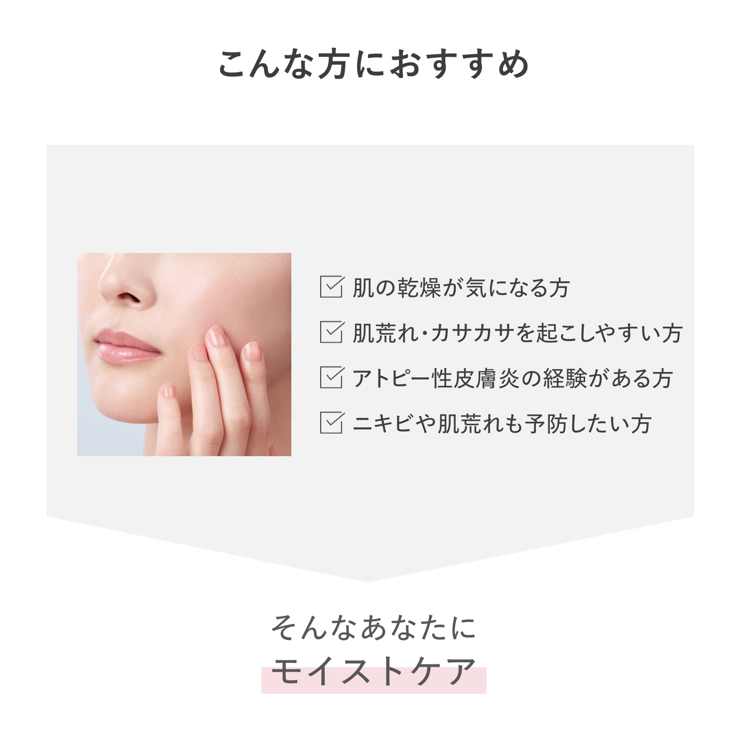 乾燥ケア&肌荒れ予防 薬用 敏感肌用化粧水誰の肌にも存在し、美しい肌の鍵である美肌菌に着目。 繰り返しがちな乾燥・肌荒れを予防。深いうるおいに満ちた「なめらか美肌」へ導きます。薬用敏感肌用化粧水。角層バリアに徹底アプローチ。 角層バリアにうるおいを与え、健やかに整える。 カサカサ・ごわつき、繰り返しがちな乾燥を防ぎます。 普通肌~乾燥肌向けです。 <敏感肌のための低刺激設計> ○敏感肌でも使える厳選成分を使用 ○厳しい衛生基準で製造(クリーン製法) ○アルコール無添加(エチルアルコール) ○パラベン(防腐剤)無添加 ○無香料 ○無着色 ○弱酸性 ○敏感肌の方のご協力によるパッチテスト済み ○スティンギング(皮ふ刺激感)テスト済み (ピリピリ・ヒリヒリといった使用直後の刺激感を確かめるテストです) ○アレルギーテスト済み ○ニキビのもとになりにくい処方 (すべての方にアレルギーや皮ふ刺激がおきない、また、ニキビができないわけではありません。)