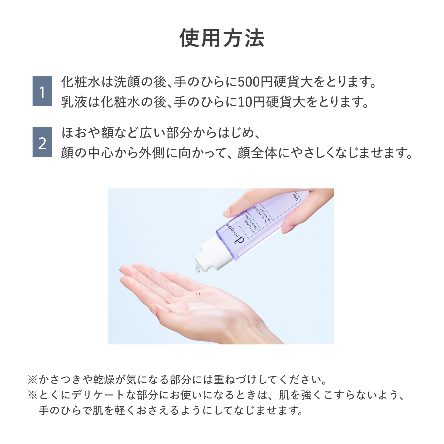 誰の肌にも存在し、美しい肌の鍵である美肌菌に着目。 エイジングケア*&美白。うるおってハリ・透明感に満ちた「なめらか美肌」へ導きます。薬用敏感肌用化粧水。角層バリアに徹底アプローチ。 角層バリアにうるおいを与え、健やかに整える。 薬用美白有効成分がメラニンの生成を抑え、シミ・そばかすを防ぐ。 *年齢に応じたうるおいケア <敏感肌のための低刺激設計> ○敏感肌でも使える厳選成分を使用 ○厳しい衛生基準で製造(クリーン製法) ○アルコール無添加(エチルアルコール) ○パラベン(防腐剤)無添加 ○無香料 ○無着色 ○弱酸性 ○敏感肌の方のご協力によるパッチテスト済み ○スティンギング(皮ふ刺激感)テスト済み (ピリピリ・ヒリヒリといった使用直後の刺激感を確かめるテストです) ○アレルギーテスト済み ○ニキビのもとになりにくい処方 (すべての方にアレルギーや皮ふ刺激がおきない、また、ニキビができないわけではありません。)