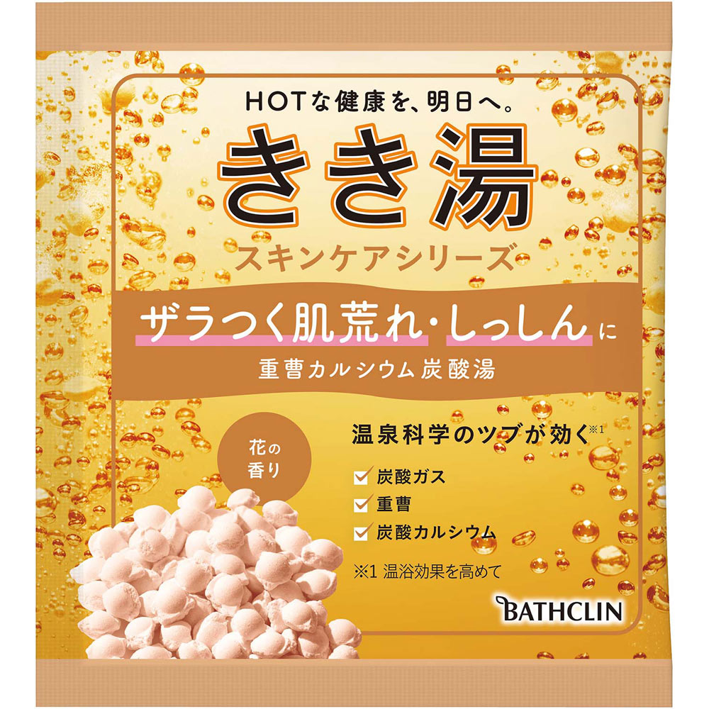 HOTな健康を、明日へ。スキンケアシリーズザラつく肌荒れ・しっしんに温泉科学のツブが効く※1・炭酸ガス・重曹・炭酸カルシウム※1 温浴効果を高めて【香り】花の香り【お湯の色】淡黄色の湯(透明タイプ)