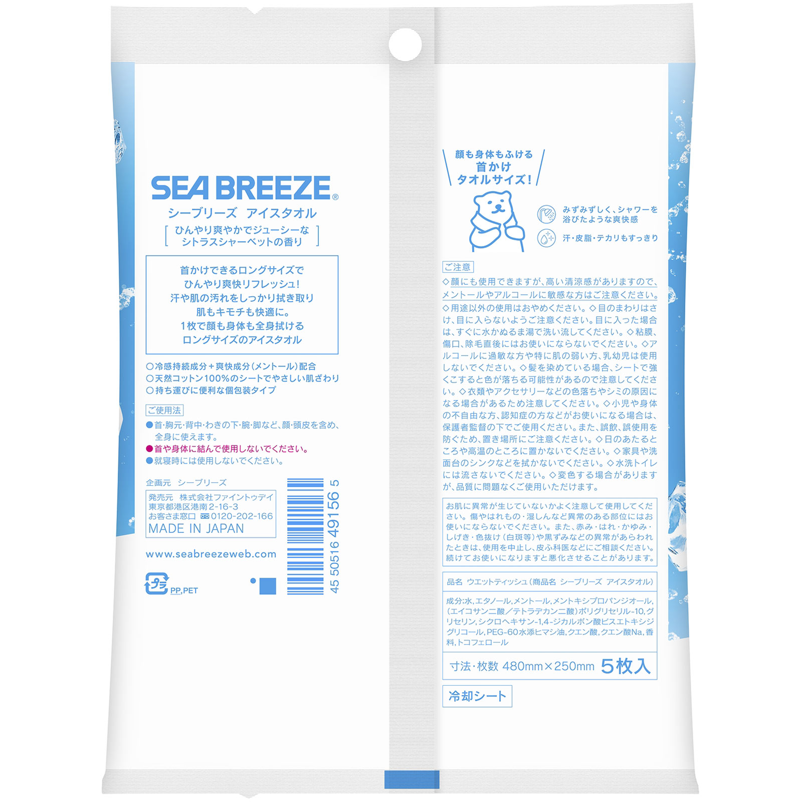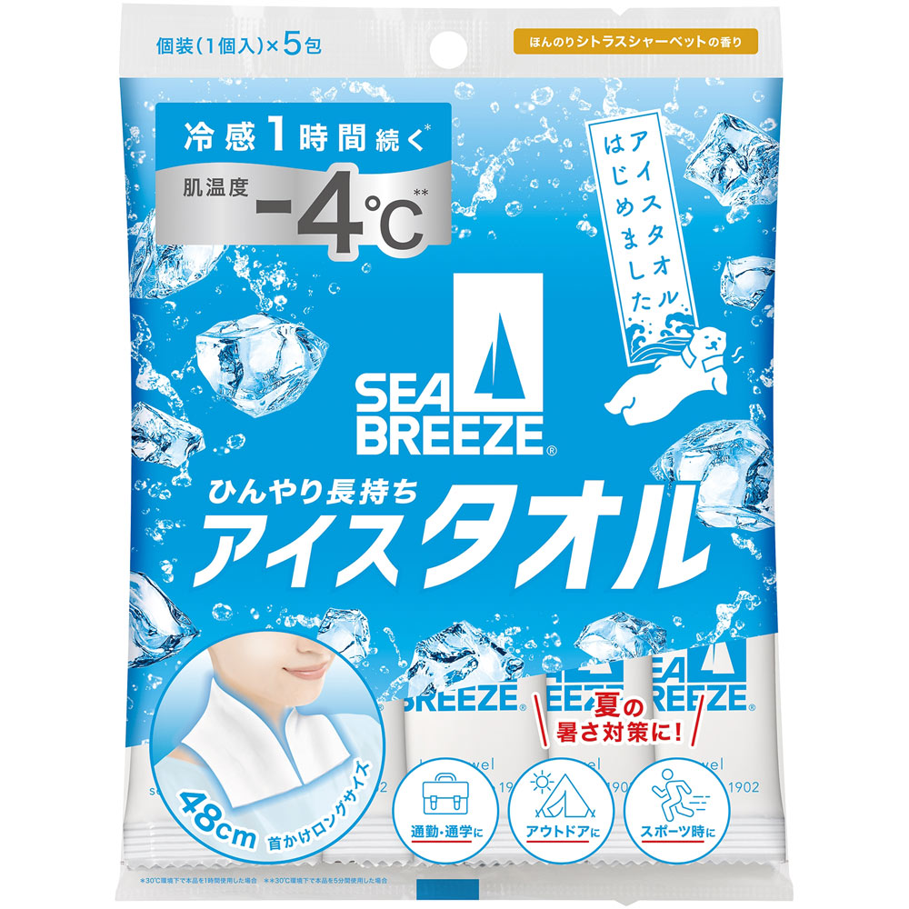 ほんのりシトラスシャーベットの香り冷感1時間続く* 肌温度-4℃**アイスタオルはじめましたひんやり長持ちアイスタオル48cm 首かけロングサイズ夏の暑さ対策に!通勤・通学に アウトドアに スポーツ時に*30℃環境下で本品を1時間使用した場合**30℃環境下で本品を5分間使用した場合ひんやり爽やかでジューシーなシトラスシャーベットの香り首かけできるロングサイズでひんやり爽快リフレッシュ!汗や肌の汚れをしっかり拭き取り肌もキモチも快適に。1枚で顔も身体も全身拭けるロングサイズのアイスタオル○冷感持続成分+爽快成分(メントール)配合○天然コットン100%のシートでやさしい肌ざわり○持ち運びに便利な個包装タイプ顔も身体もふける首かけタオルサイズ!みずみずしく、シャワーを浴びたような爽快感汗・皮脂・テカリもすっきり寸法 480mm×250mm