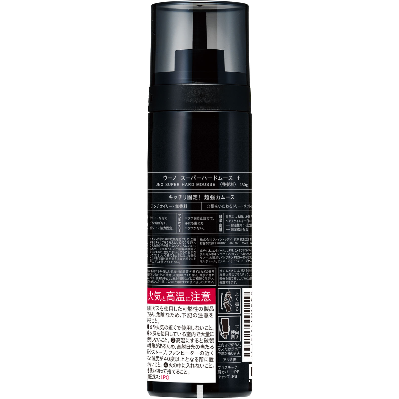 ベタつかない超ハード×スーパーハードムースキッチリ固定!超強力ムースアンチオイリー・無香料クリーミーな泡でごわつきがなく、超ハードに強力固定。○アンチオイリーベタつき防止処方で、手にも髪にもベタつかない。○耐湿・調湿湿気による崩れを防ぎ、ヘアスタイルを一日中キープ耐湿性セット成分配合調湿成分配合