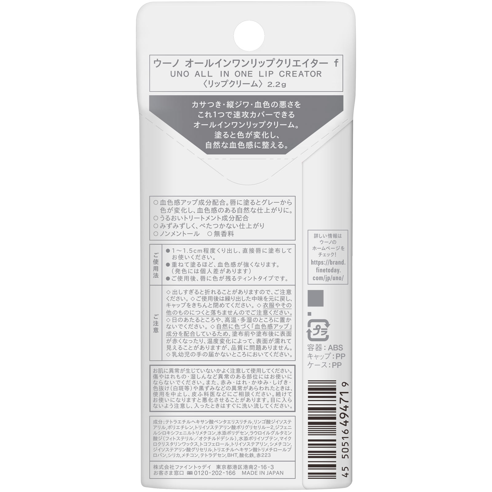 速攻これ1本で唇悩みカバー男性用リップクリームカサつき・縦ジワ・血色の悪さにヘアメイクアップアーティスト監修塗ると色が変わるカサつき・縦ジワ・血色の悪さをこれ1つで速攻カバーできるオールインワンリップクリーム。塗ると色が変色し、自然な血色感に整える。○血色感アップ成分配合。唇に塗るとグレーから色が変色し、血色感のある自然な仕上がりに。○うるおいトリートメント成分配合○みずみずしく、べたつかない仕上がり○ノンメントール○無香料