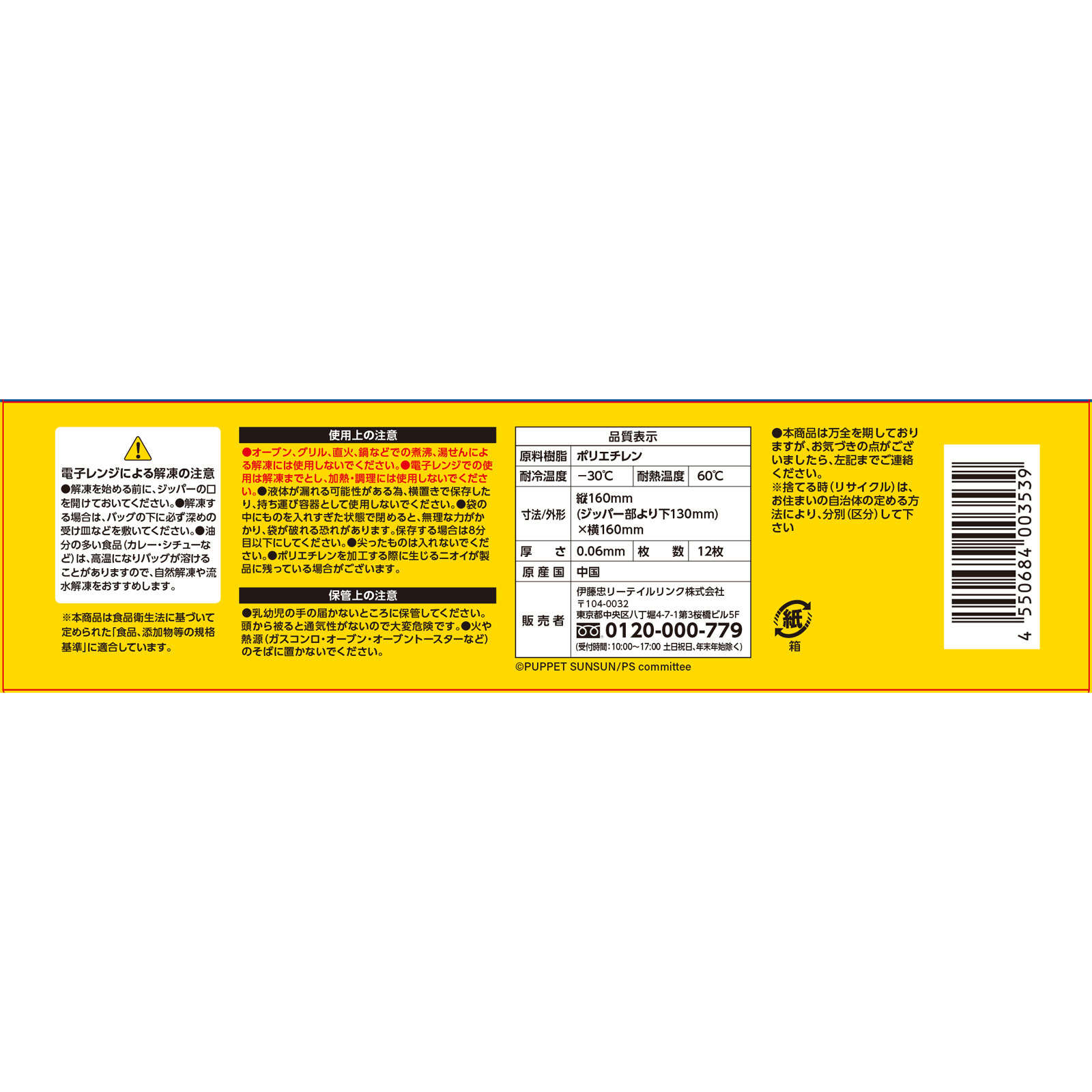 パペットスンスン Wジッパーバッグ S 12枚