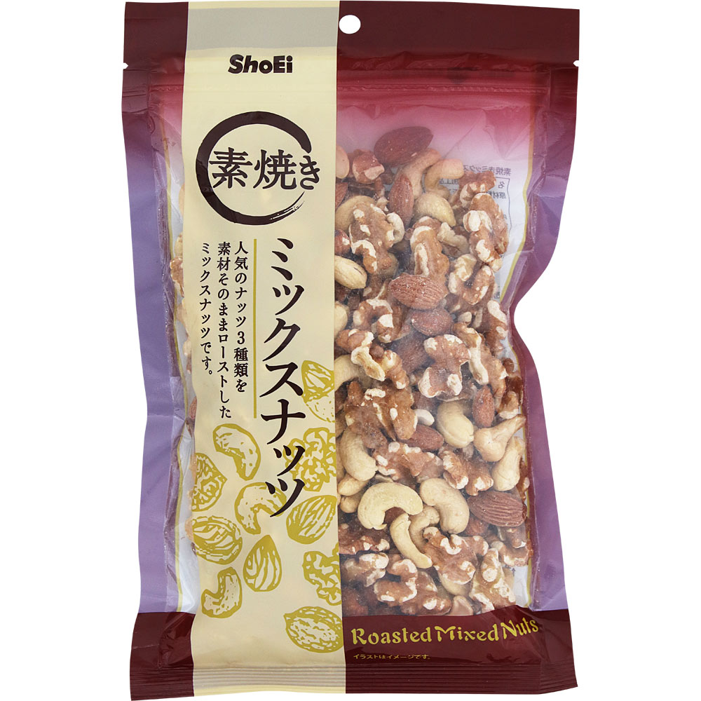人気のナッツ3種類を素材そのままローストしたミックスナッツです。