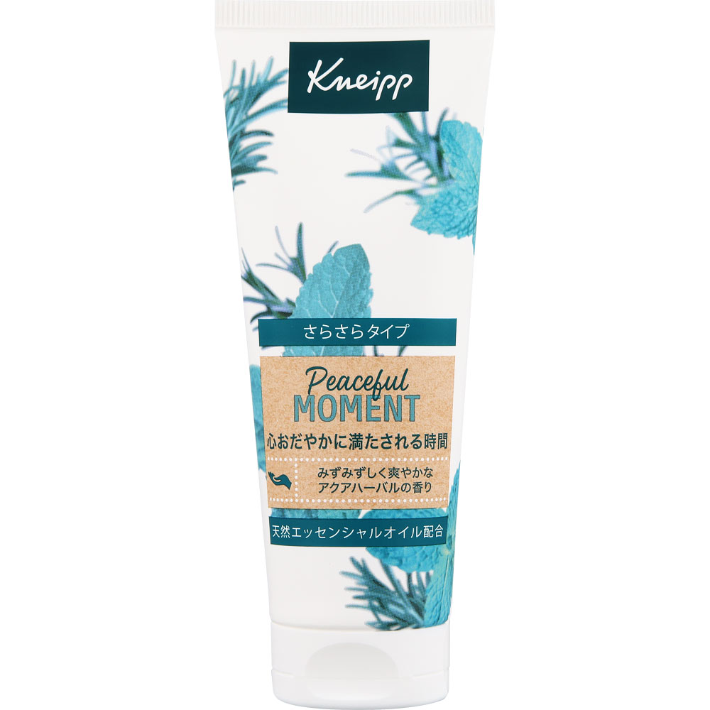 さらさらタイプ心おだやかに満たされる時間天然エッセンシャルオイル配合心が軽くなるようなみずみずしく爽やかなアクアハーバルの香り植物オイル*1配合で、手肌や爪にすばやくなじみベタつきません。●スイートアーモンドオイル*2配合*1 保湿成分*2 アーモンド油(保湿成分)クナイプの約束●植物由来成分(植物オイル・植物エキス)を使用●防腐剤(パラベン)不使用●パラフィン、シリコン、鉱物油(ミネラルオイル)、着色料不使用●ドイツ大学病院で皮膚への適合性テストを実施しています※全ての方にアレルギーが起こらないということではありません