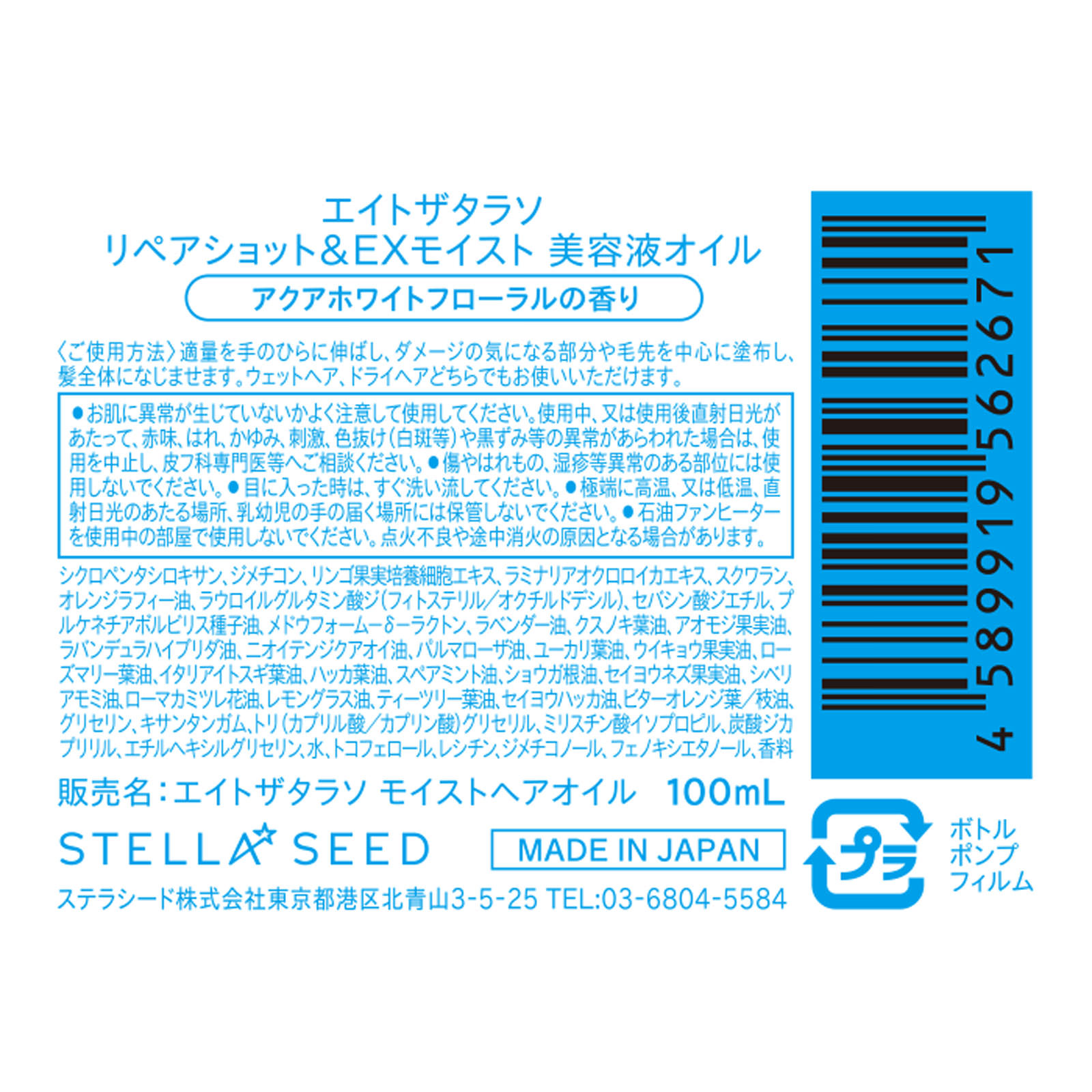 保水美容液 ヘアオイルMoist しっとりタラソ幹細胞処方*2でぷるん髪スキンケア発想で潤い浸透No.1*1AMERICA RANKING*1 COSMEISTアメリカ シャンプー・コンディショナー区分月間ランキング1位 期間:2019年6月1日から2019年6月30日*2 リンゴ果実培養細胞エキス、ラミナリアクロロイカエキス(保湿)リペアショット&EXモイスト 美容液オイルアクアホワイトフローラルの香り