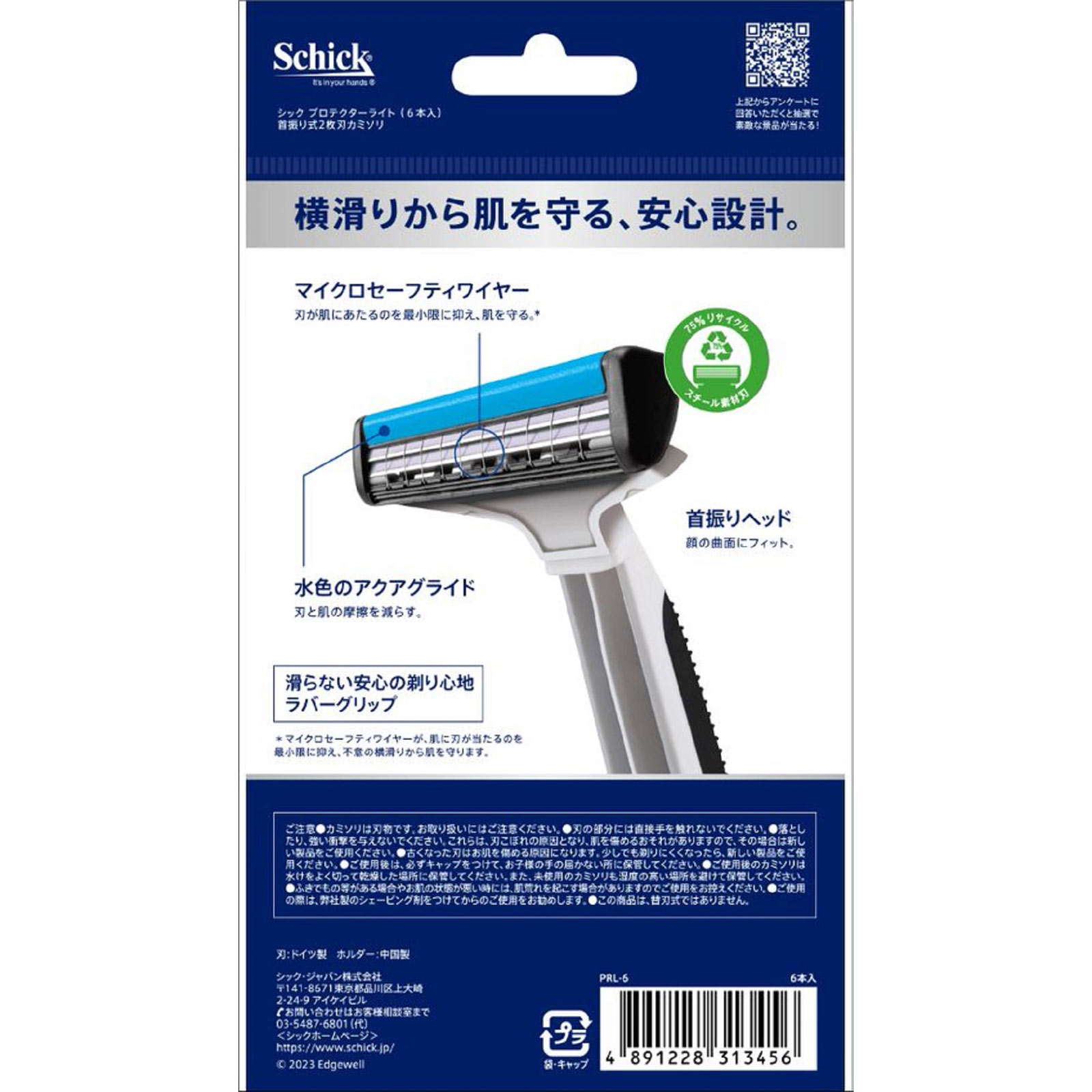 *マイクロセーフティワイヤーが、肌に刃が当たるのを最小限に抑え、不意の横滑りから肌を守ります。