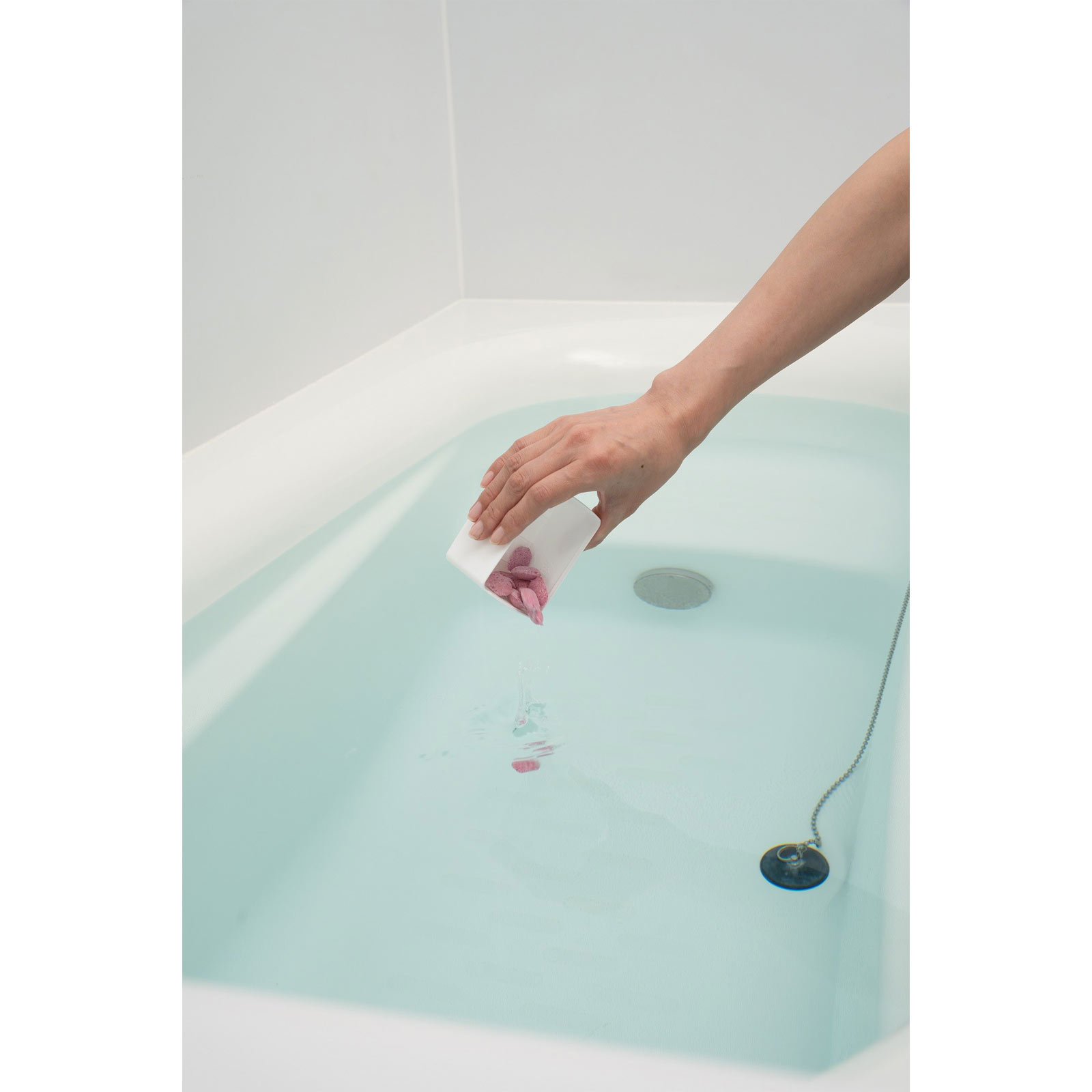 お風呂のお湯(200L)に本品約30g(約12ツブ)~50g(約20ツブ)を入れ、よくかきまぜて溶かしきってから入浴してください。