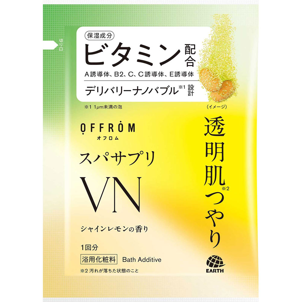保湿成分ビタミン配合A誘導体、B2、C、C誘導体、E誘導体デリバリーナノバブル※1設計※1 1μm未満の泡透明肌つやり1回分お風呂でカラダの外側から美肌ケア 透明肌※2へ導く新習慣のサプリ浴お肌にうれしい成分がデリバリーバブル※1と共に身体を包み込みますデリバリーバブル※1設計 炭酸泡※3保湿成分が角質層のすみずみまで浸透○美肌成分(保湿成分)・ビタミンC アスコルビン酸・ビタミンC誘導体 リン酸アスコルビルマグネシウム・ビタミンE誘導体 酢酸トコフェロール○ハリツヤ成分(保湿成分)・ビタミンA誘導体 パルミチン酸レチノール・ビタミンB2 リボフラビン○整肌成分・GK2 グリチルリチン酸2K・CICAエキス ツボクサ葉/茎エキス※1 1μm未満の泡※2 汚れが落ちた状態のこと※3 炭酸水素Na・炭酸Na(発泡剤)由来の炭酸泡○シャインレモンの香り気分が晴れやかになるようなレモンを感じるフレッシュな香りです。ビタミンイエローの湯色(色付き透明)