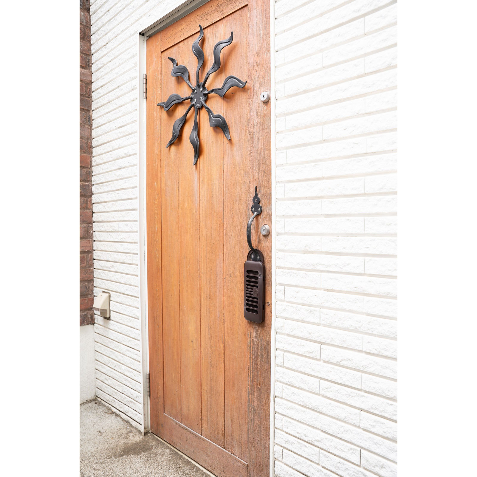 4.玄関のドアノブなど吊り下げる所に引っ掛けて、フィットするまでフックを押し下げてください。ピタッとフィットすることで、風が吹いても落ちにくい!