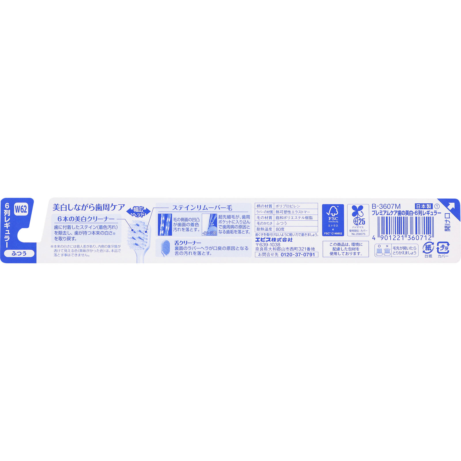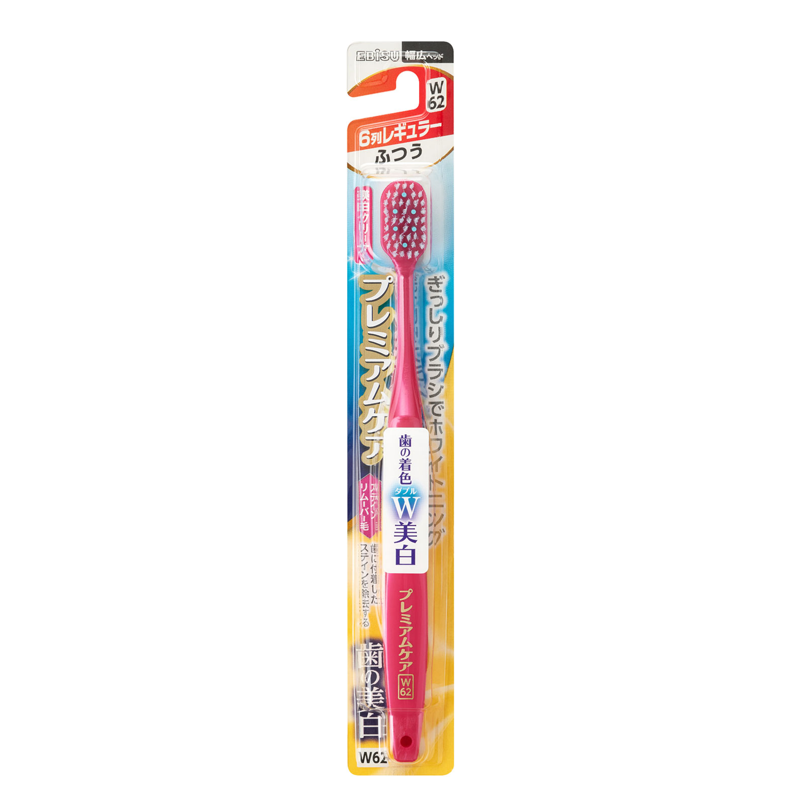 幅広ヘッド美白クリーナーぎっしりブラシでホワイトニング歯の着色W美白歯に付着したステインを除去する美白しながら歯周ケア○5本の美白クリーナー歯に付着したステイン(着色汚れ)を除去し、歯が持つ本来の白さ※を取り戻す。※本来の白さには個人差があり、内側の象牙質が透けて見える色(黄味がかった色)は、本品で落とす事はできません。○ステインリムーバー毛毛の側面の凹凸が歯面の着色汚れを落とす。超先細毛が歯周ポケットに入り込んで歯周病の原因となる歯垢を落とす。○舌クリーナー裏面のラバーヘラが口臭の原因となる舌の汚れを落とす。耐熱温度:80度