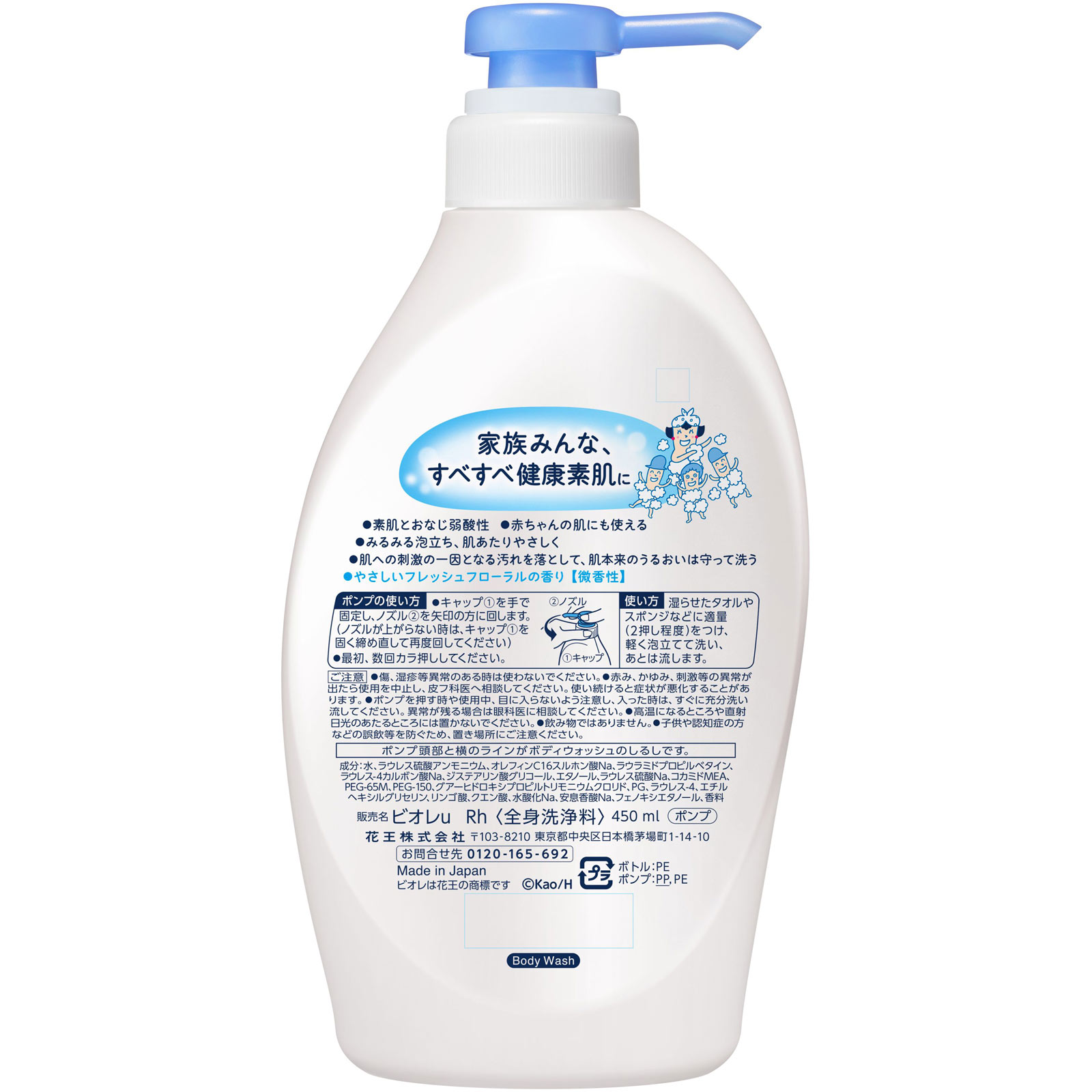 家族みんな、すべすべ健康素肌に●素肌とおなじ弱酸性●赤ちゃんの肌にも使える●みるみる泡立ち、肌あたりやさしく●肌への刺激の一因となる汚れを落として、肌本来のうるおいは守って洗う●やさしいフレッシュフローラルの香り 【微香性】