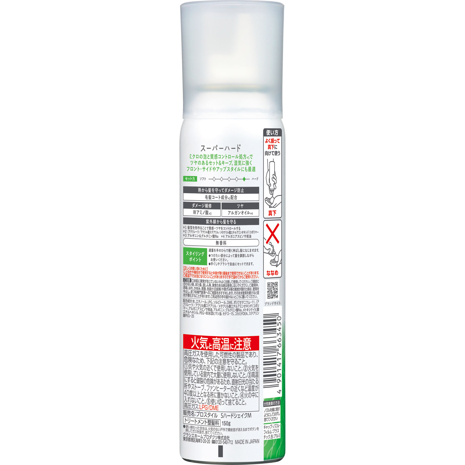 1日中しっかりスタイルキープムース剤売上No.1*ブランド*インテージSRI+アウトバスヘアケア(ムース・フォーム剤)市場2017年12月~2022年11月累計販売金額質感コントロール処方サロン後1ヶ月でもニュアンスきまる。ミクロの泡と質感コントロール処方*1でツヤのあるセット&キープ。湿気に強くフロント・サイドやアップスタイルにも最適セット力:ソフト ◇◇◇◇◆ ハード○熱から守ってダメージ防止毛髪コート成分*2配合○ダメージ補修Wアミノ酸*3○ツヤアルガンオイル*4末紫外線から髪を守る*1 髪型を形作ることで質感=ツヤをコントロールする*2 (アクリレーツ/アクリル酸ステアリル/メタクリル酸エチルアミンオキシド)コポリマー*3 アルギニン&グルタミン酸Na*4 アルガニアスピノサ核油無香料