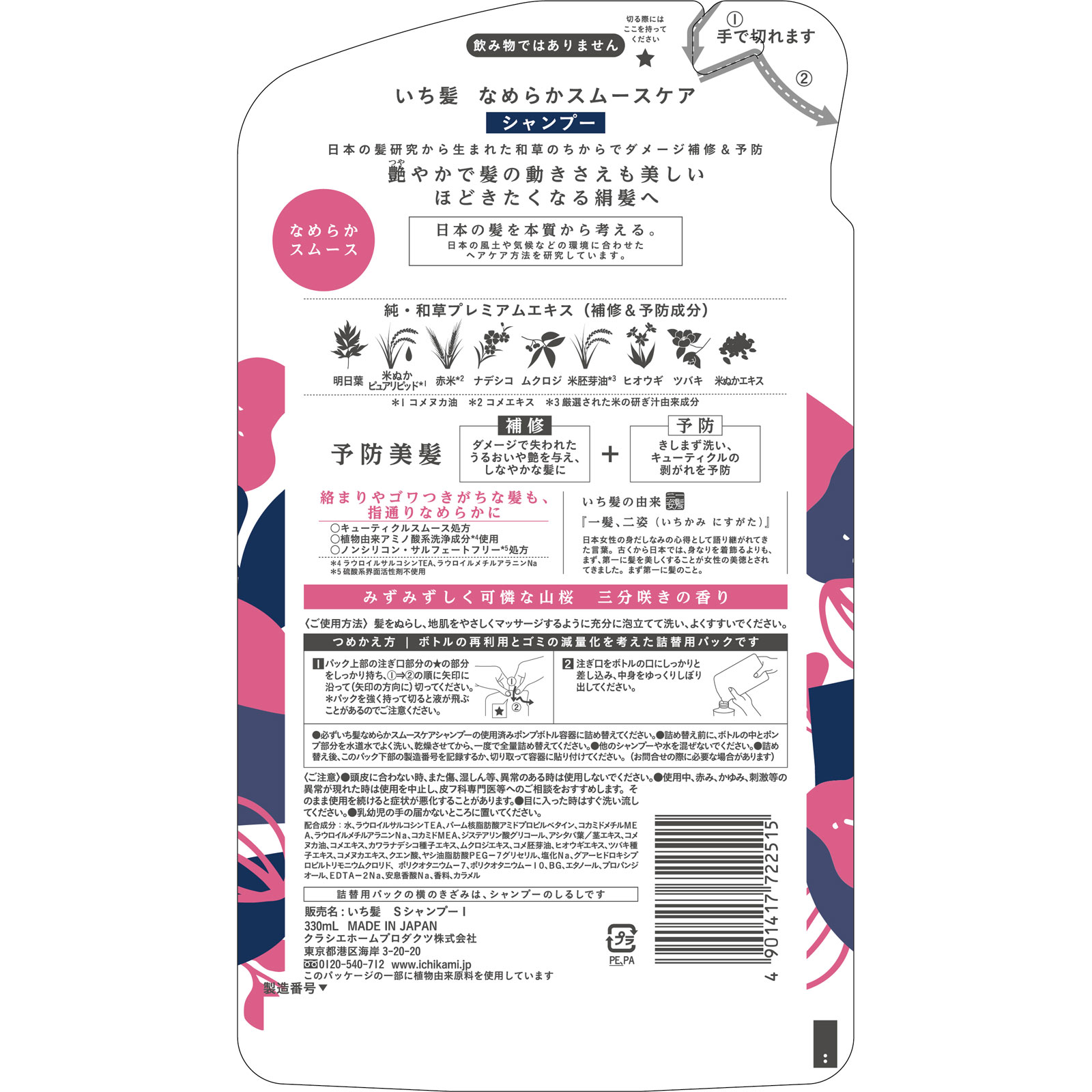 日本の髪研究から生まれた和草のちからでダメージ補修&予防艶やかで髪の動きさえも美しいほどきたくなる絹髪へ日本の髪を本質から考える。日本の風土や気候などの環境に合わせたヘアケア方法を研究しています。純・和草プレミアムエキス(補修&予防成分)明日葉 米ぬかピュアリピッド*1 赤米*2 ナデシコ ムクロジ 米胚芽油*3 ヒオウギ ツバキ 米ぬかエキス*1 コメヌカ油*2 コメエキス*3 厳選された米の研ぎ汁由来成分予防美髪[補修]ダメージで失われたうるおいや艶を与え、しなやかな髪に[予防]きしまず洗い、キューティクルの剥がれを予防絡まりやゴワつきがちな髪も、指通りなめらかに○キューティクルスムース処方○植物由来アミノ酸系洗浄成分*4使用○ノンシリコン・サルフェートフリー*5処方*4 ラウロイルサルコシンTEA、ラウロイルメチルアラニンNa*5 硫酸系界面活性剤不使用みずみずしく可憐な山桜 三分咲きの香り
