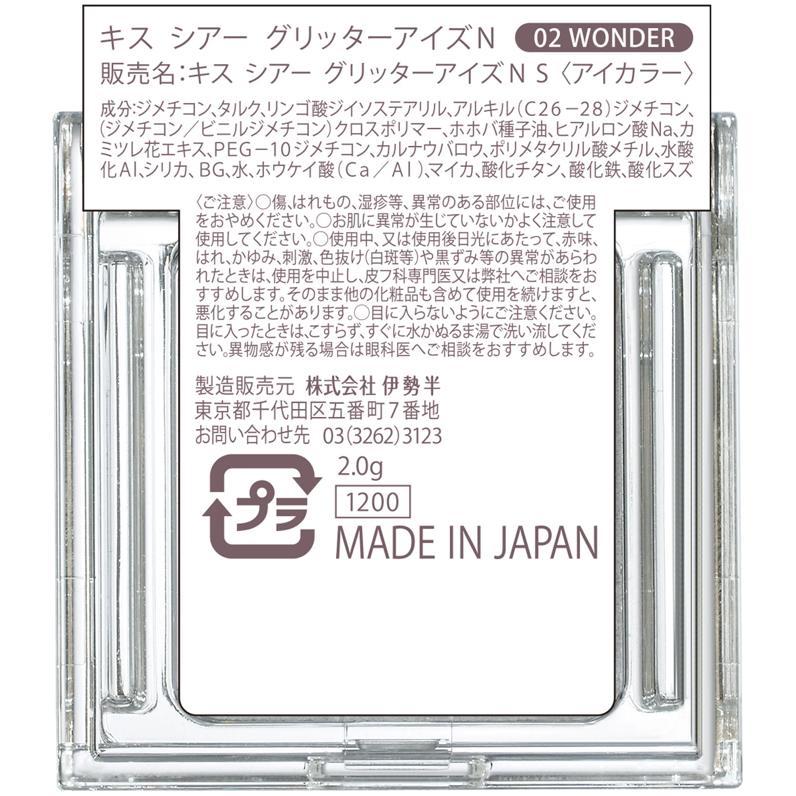 ジメチコン、タルク、リンゴ酸ジイソステアリル、アルキル(C26-28)ジメチコン、(ジメチコン/ビニルジメチコン)クロスポリマー、ホホバ種子油、ヒアルロン酸Na、カミツレ花エキス、PEG-10ジメチコン、カルナウバロウ、ポリメタクリル酸メチル、水酸化Al、シリカ、BG、水、ホウケイ酸(Ca/Al)、マイカ、酸化チタン、酸化鉄、酸化スズ