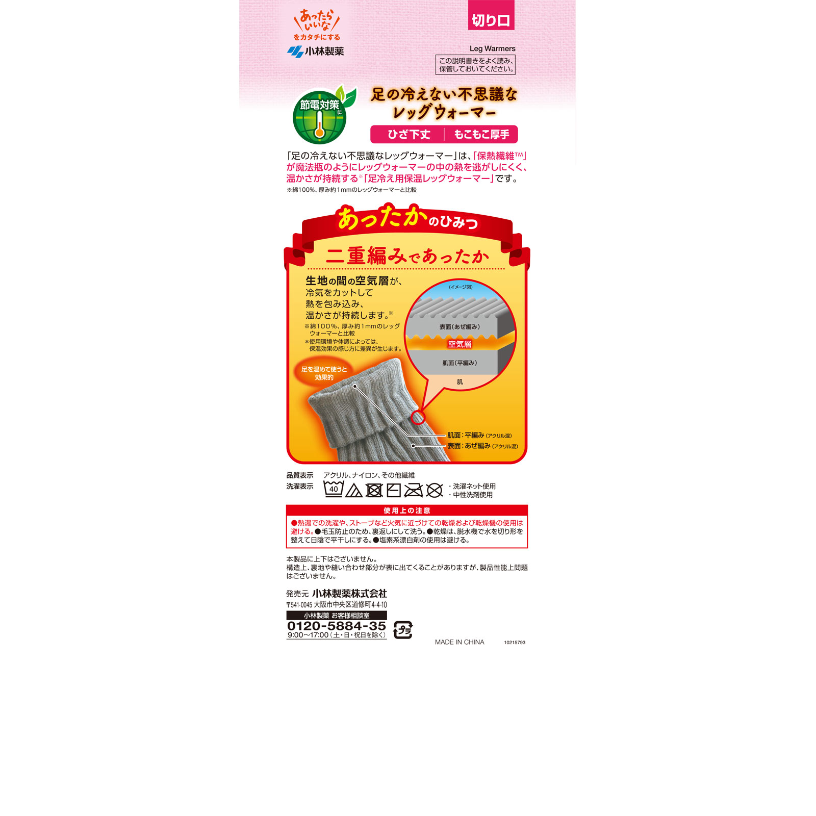 フリーサイズゆったり編みで締め付けない足あったか包み込む二重編み仕様厚手くつ下 スウェットの上に重ね履きできるふんわり保温層くつろぐ暖かさ節電対策に「足の冷えない不思議なレッグウォーマー」は、「保熱繊維」が魔法瓶のようにレッグウォーマーの中の熱を逃がしにくく、温かさが持続する※「足冷え用保温レッグウォーマー」です。※綿100%、厚み約1mmのレッグウォーマーと比較あったかのひみつ○二重編みであったか生地の間の空気層が、冷気をカットして熱を包み込み、温かさが持続します。※※綿100%、厚み約1mmのレッグウォーマーと比較*使用環境や体調によっては、保温効果の感じ方に差異が生じます。足を温めて使うと効果的肌面:平編み(アクリル混)表面:あぜ編み(アクリル混)