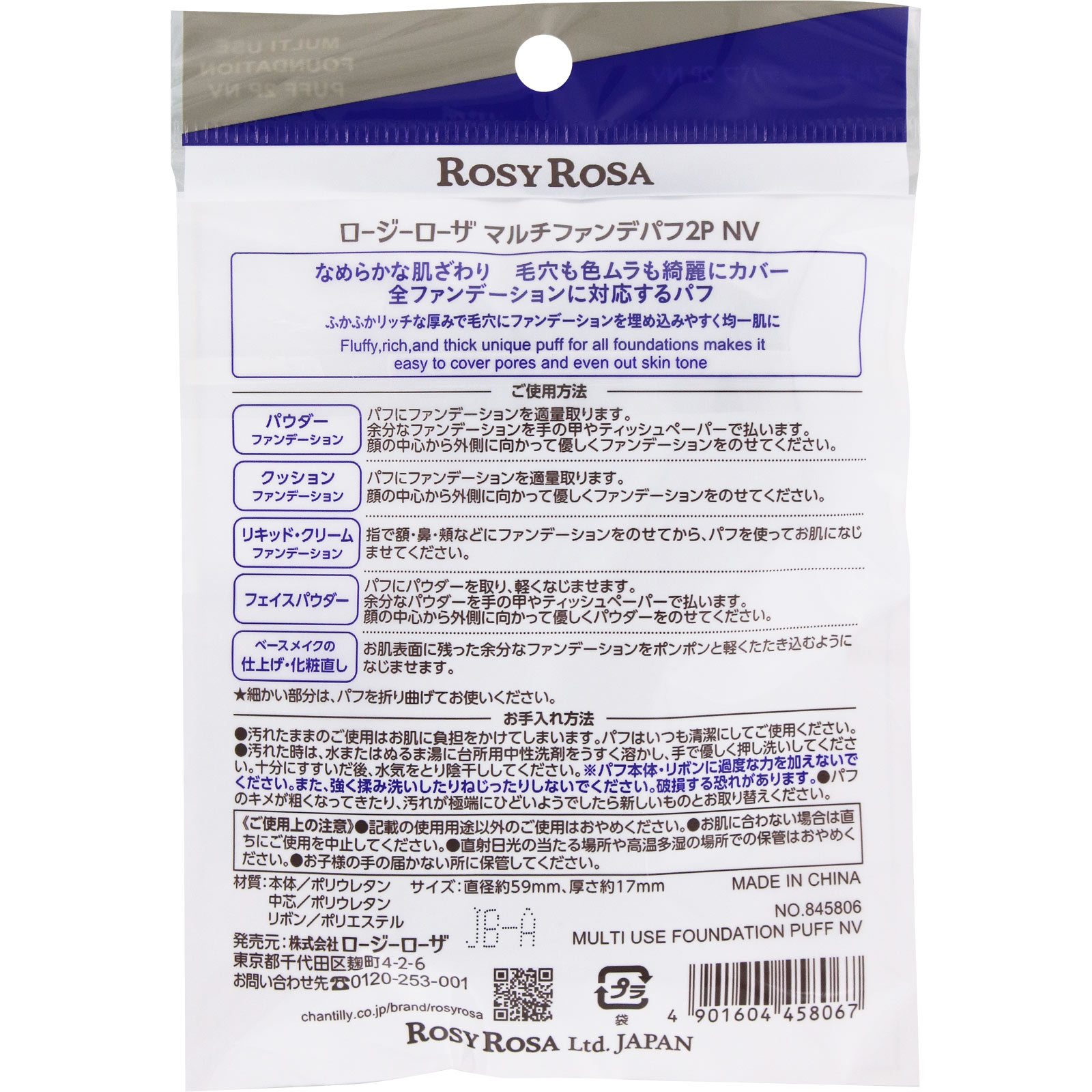 ロージーローザ マルチファンデパフ 2個 ネイビー NV