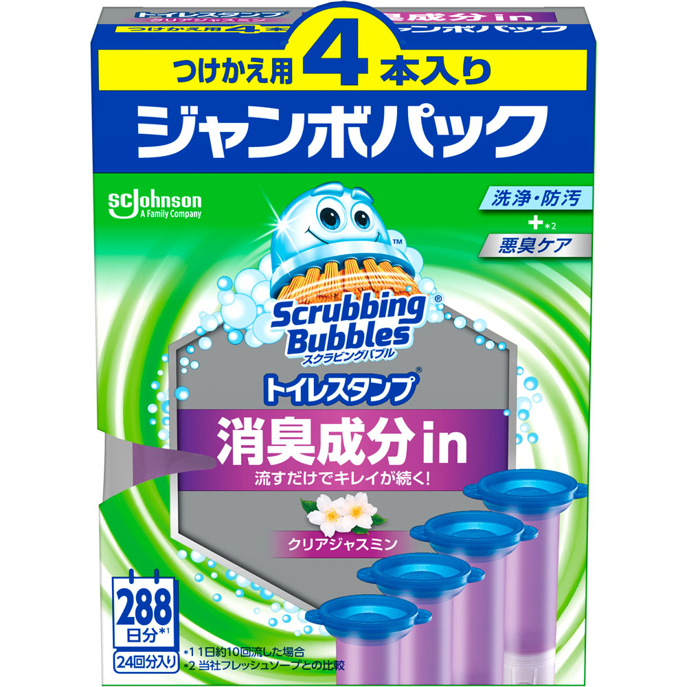 つけかえ用4本入り洗浄・防汚+*2悪臭ケア流すだけでキレイが続く!288日分*124回分入り*1 1日約10回流した場合*2 当社フレッシュソープとの比較