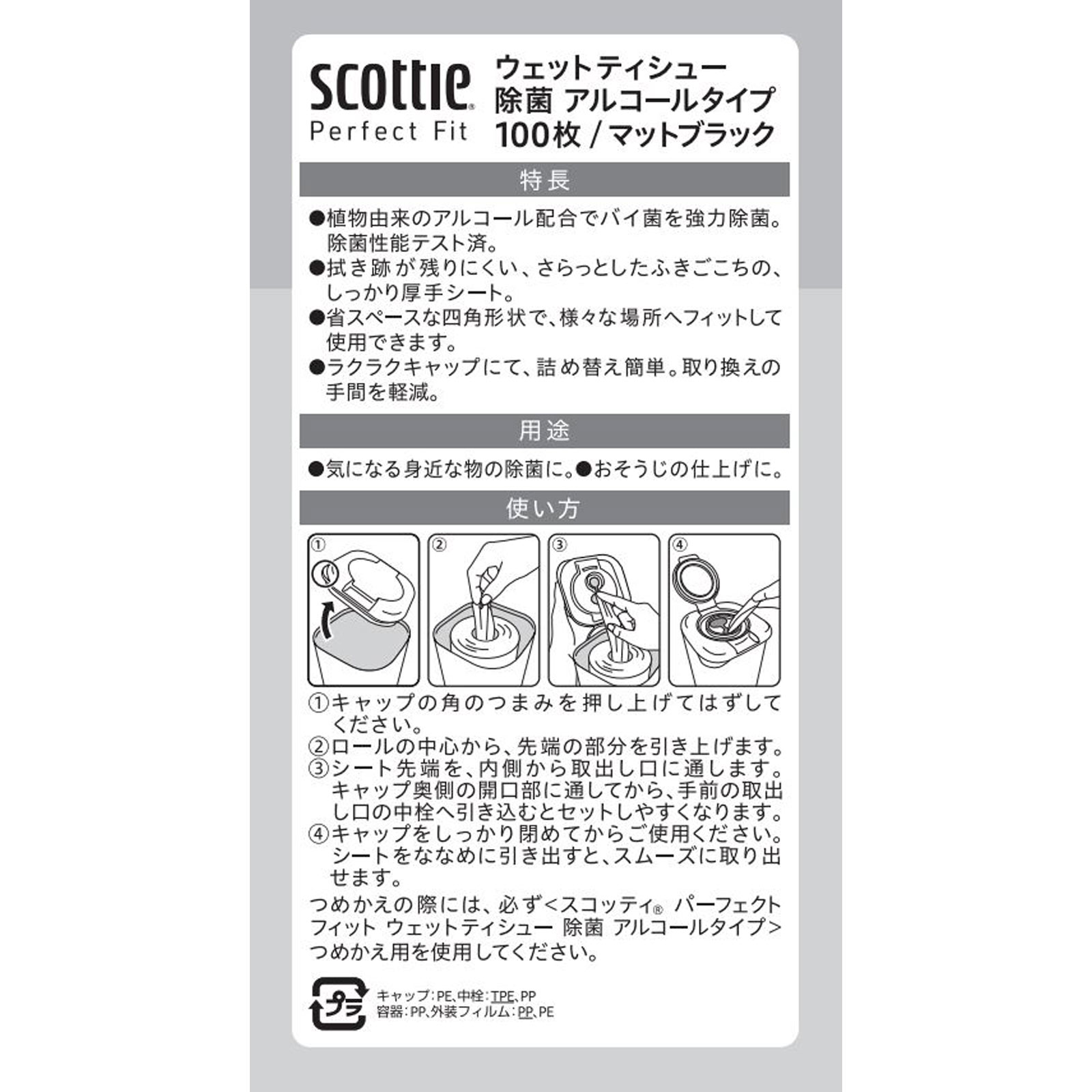 つめかえの際には、必ず〈スコッティ パーフェクトフィット ウェットティシュー 除菌 アルコールタイプ〉つめかえ用を使用してください。