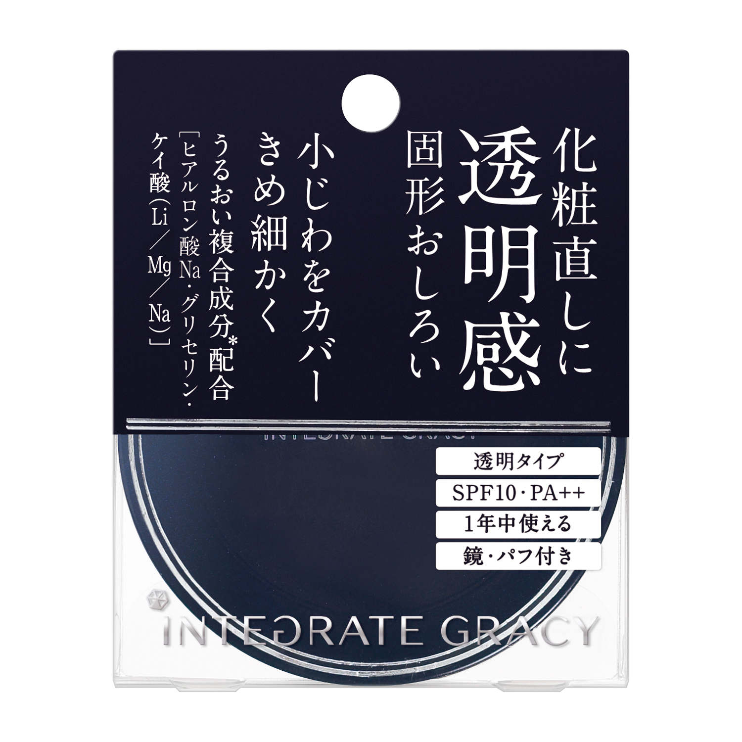 小じわ・毛穴をカバーし透明肌へ。化粧直しに最適な固型おしろいスルスルとなめらかに肌に広がり、小じわや毛穴をカバーします。 きめ細かく、透明感のある肌をひきだしながら、ファンデーションのもちを高めます。 紫外線を防ぎ、化粧直しにおすすめです。 透明タイプ。SPF10・PA++。1年中使える。鏡・パフ付き。 SPF 10 PA++