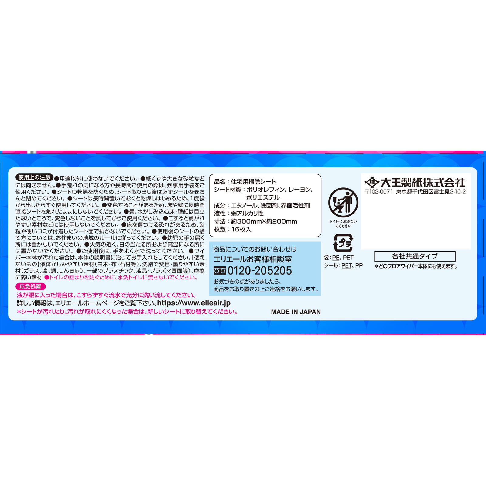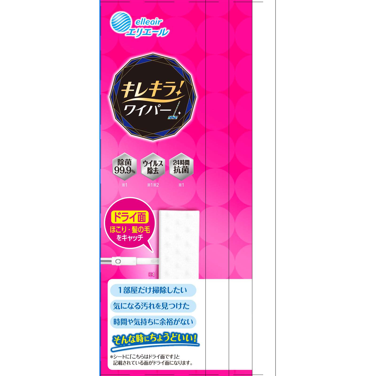 1部屋だけ汚れを見つけた時間や気持ちに余裕がないそんな時にちょうどいい!無香性ドライ×ウエット※3シート除菌99.9%※1 ウイルス除去※1※2 24時間抗菌※1ドライ面:ほこり・髪の毛をキャッチひっくり返して使えるウエット面:油・皮脂汚れを拭き取る〔場所〕フローリング・畳・キッチンの床・天井・網戸〔汚れ〕髪の毛・花粉・ハウスダスト・皮脂・泥・油・食べこぼし※1 特定の菌(及びウイルス)・条件下で、ウエット面での効果を検証。すべての菌・ウイルスに同様の効果が得られるものではありません。※2 エンベロープタイプのウイルス1種で、ウエット面での効果を検証。ウイルス除去は液が多い状態で行ってください。※3 「ドライ」は従来のドライシートの機能を指しています。「ウエット」は従来のウエットシートの機能を指しています。寸法:約300mm×約200mm各社共通タイプ*どのフロアワイパー本体にも使えます。