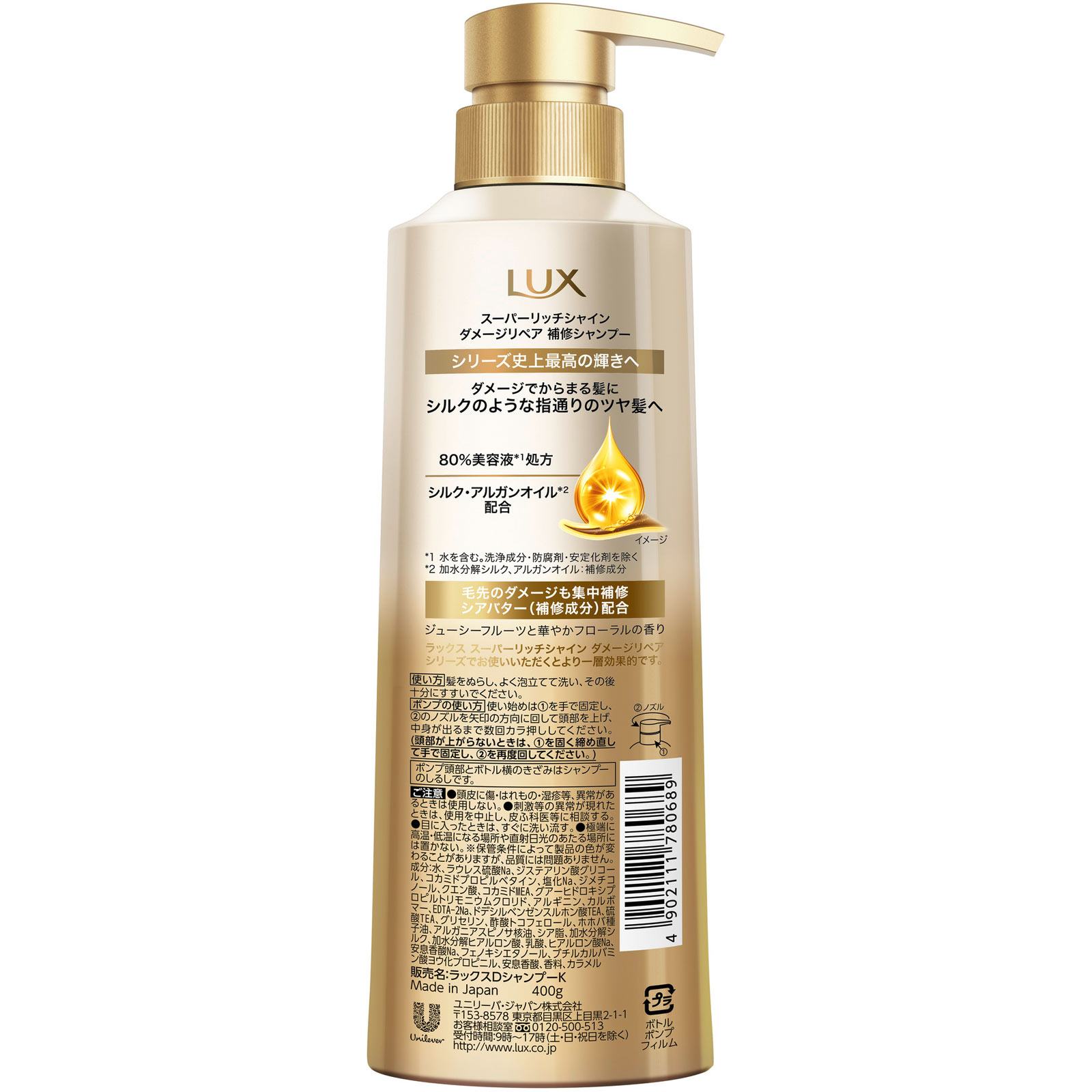 ダメージを濃密補修80%美容液+シアバター配合シリーズ史上最高の輝きへダメージでからまる髪にシルクのような指通りのツヤ髪へ80%美容液*1処方シルク・アルガンオイル*2配合*1 水を含む。洗浄成分・防腐剤・安定化剤を除く*2 加水分解シルク、アルガンオイル:補修成分毛先のダメージも集中補修シアバター(補修成分)配合ジューシーフルーツと華やかフローラルの香り