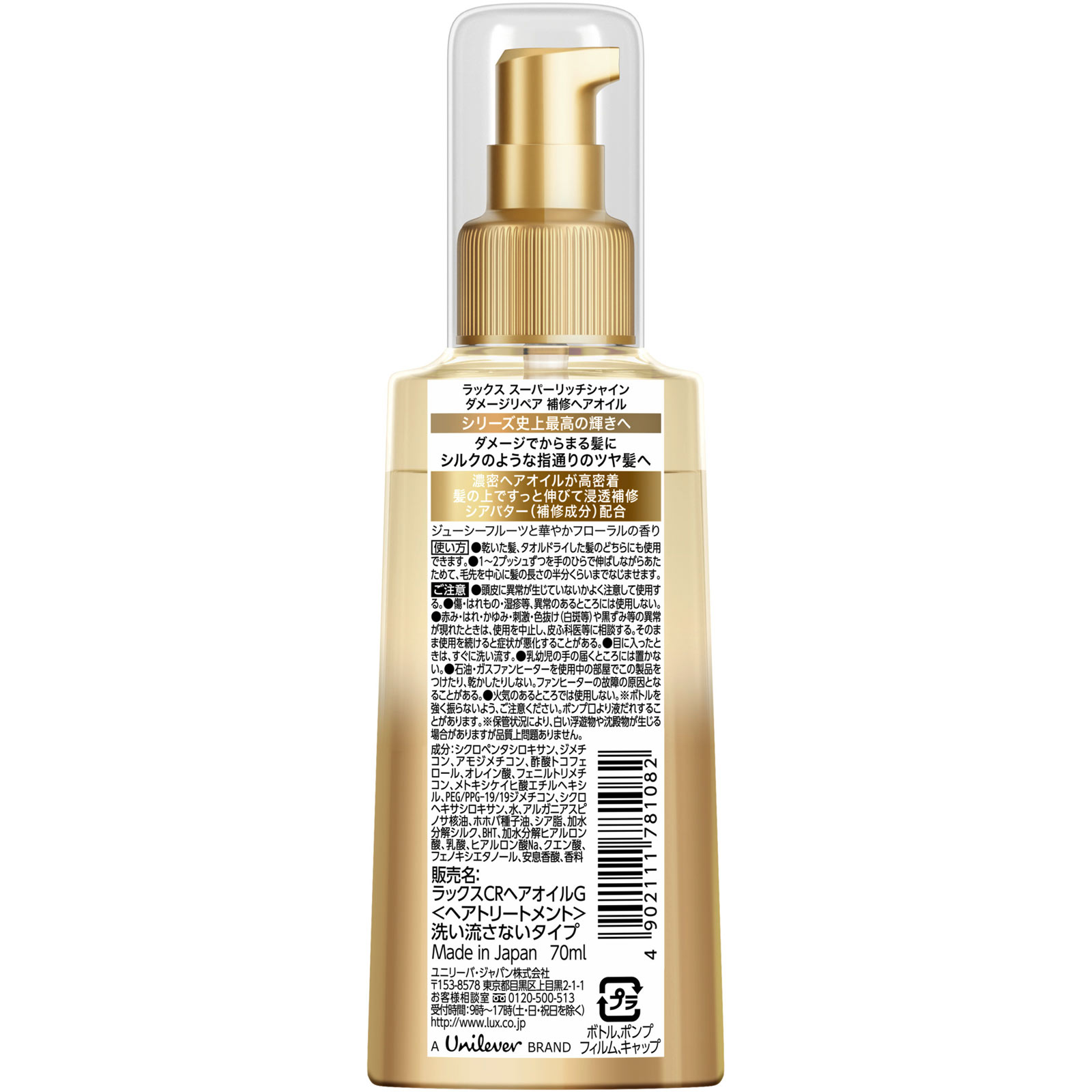 毛先までつるんダメージを濃密補修毛先までツヤ出しケアシリーズ史上最高の輝きへダメージでからまる髪にシルクのような指通りのツヤ髪へ濃密ヘアオイルが高密着髪の上ですっと伸びて浸透補修シアバター(補修成分)配合ジューシーフルーツと華やかフローラルの香り