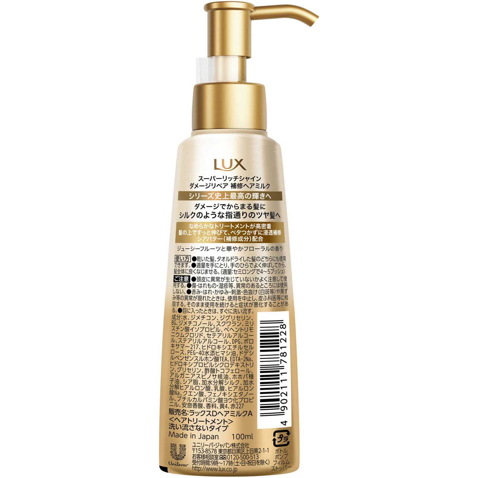 ダメージを濃密補修毛先までまとまりケアシリーズ史上最高の輝きへダメージでからまる髪にシルクのような指通りのツヤ髪へ髪の上ですっと伸びて、ベタつかずに浸透補修シアバター(補修成分)配合ジューシーフルーツと華やかフローラルの香り