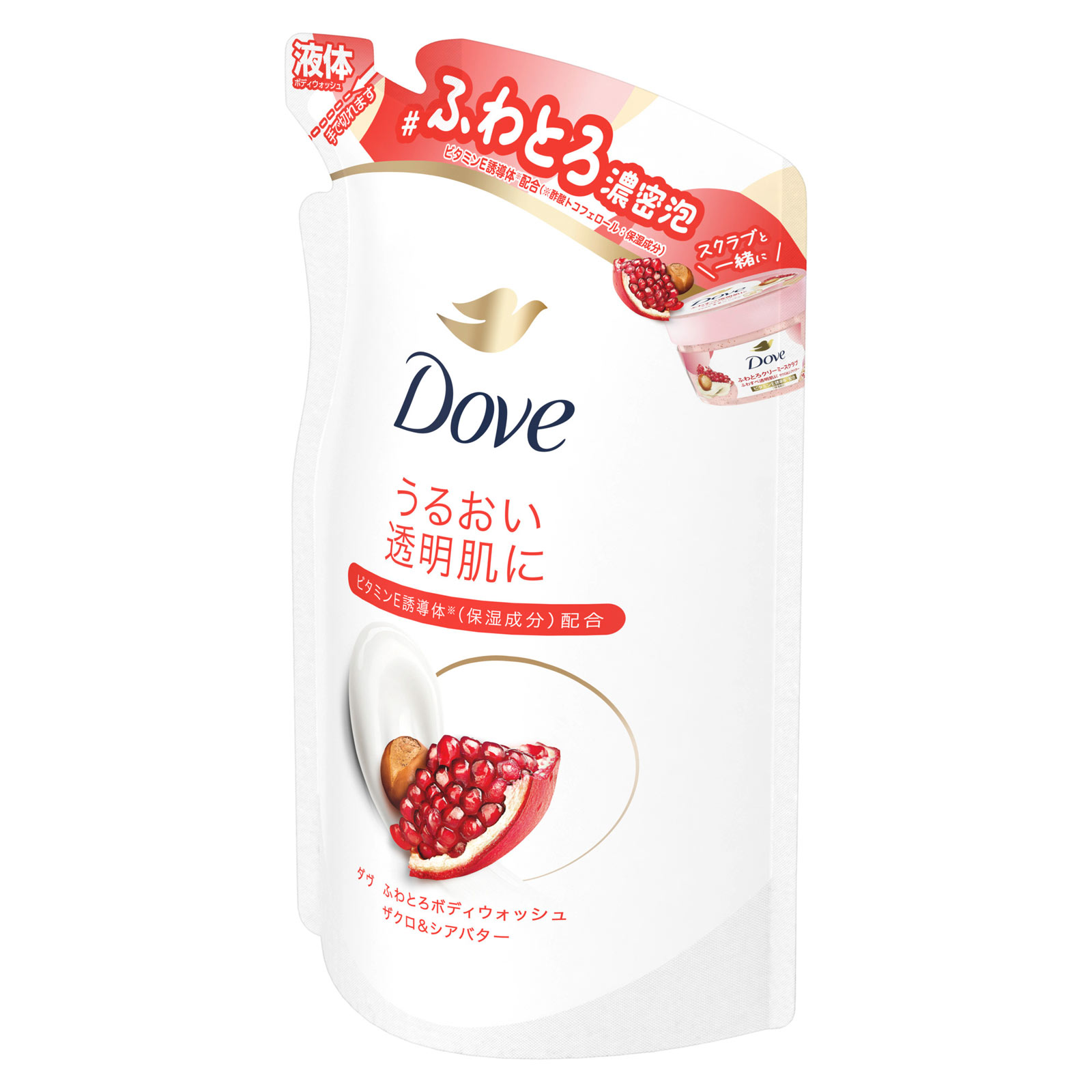 ふわとろ濃密泡で、うるおい透明肌に。ふわふわクリーム*配合ビタミンE誘導体※配合ザクロとシアバターの甘ずっぱい香り●ビタミンE誘導体※と、たっぷりのふわふわクリームを配合。うるおいを守りながら、洗うたび透明感のある肌へ導きます。●ふわとろな濃密泡で、肌にやさしく汚れを洗い流します。●ザクロとシアバターの甘ずっぱい香り(香料配合)。*ヒドロキシステアリン酸、コカミドプロピルベタイン、ジグリセリン、グリセリン水溶液:保湿成分※酢酸トコフェロール:保湿成分