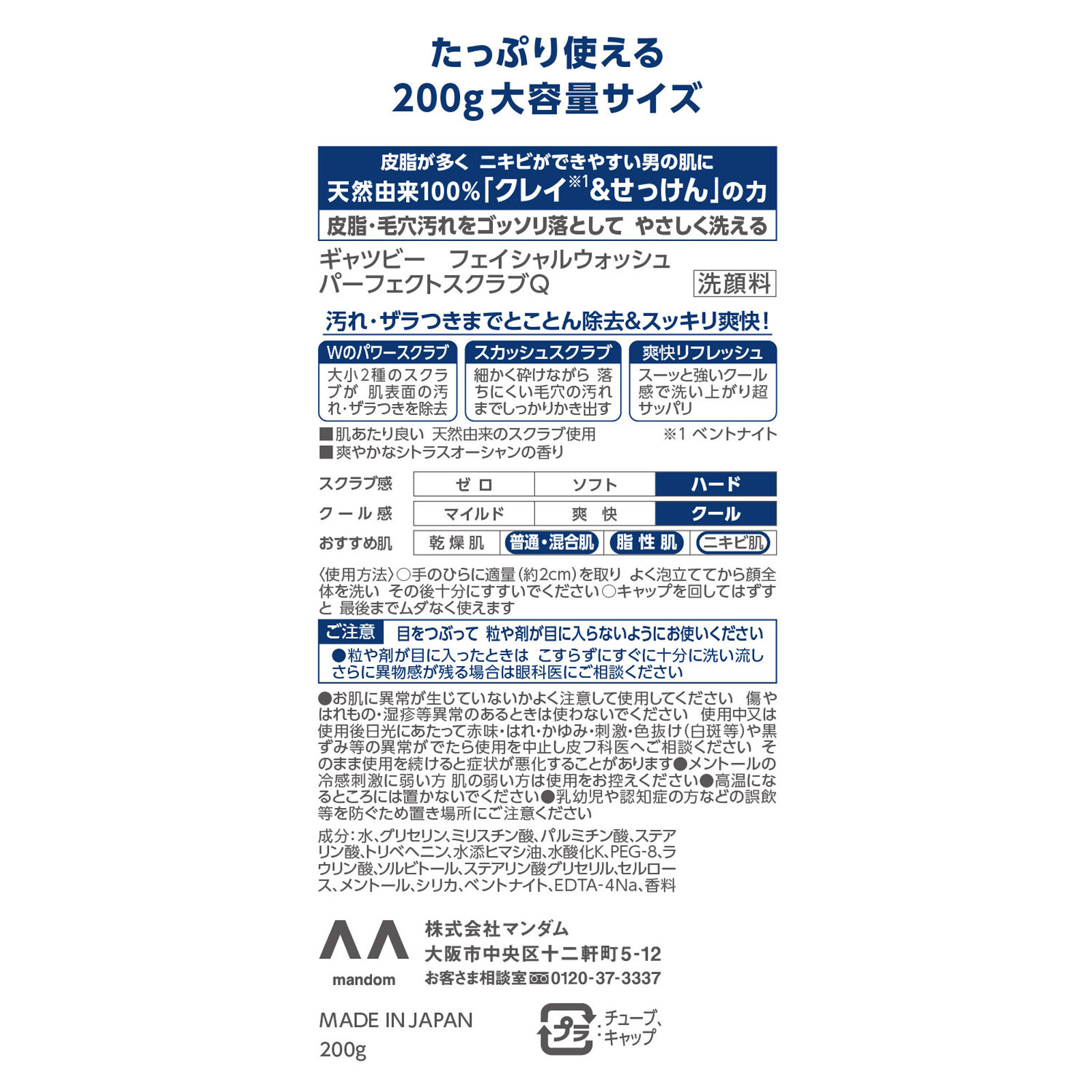 スゴ落ちEX 最強スクラブ感*通常サイズの1.5倍天然由来の洗浄成分100%*シリーズ比たっぷり使える200g大容量サイズ皮脂が多く ニキビができやすい男の肌に天然由来100%「クレイ※1&せっけん」の力皮脂・毛穴汚れをゴッソリ落として やさしく洗える汚れ・ザラつきまでとことん除去&スッキリ爽快!○Wのパワースクラブ大小2種のスクラブが 肌表面の汚れ・ザラつきを除去○スカッシュスクラブ細かく砕けながら 落ちにくい毛穴の汚れまでしっかりかき出す○爽快リフレッシュスーッと強いクール感で洗い上がり超サッパリ※1 ベントナイト■肌あたり良い 天然由来のスクラブ使用■爽やかなシトラスオーシャンの香りスクラブ感:ハードクール感:クールおすすめ肌:普通・混合肌 脂性肌