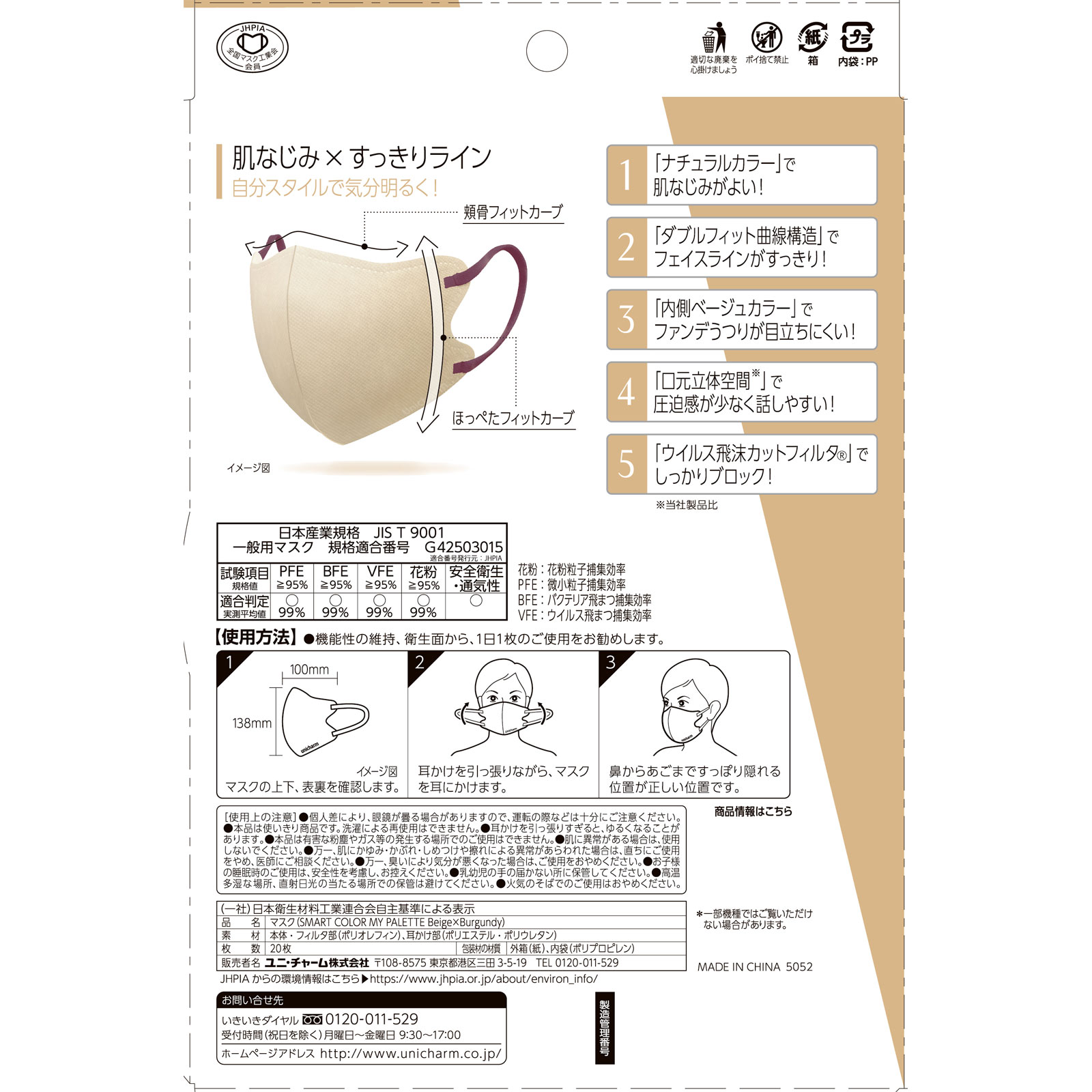 かぜ・花粉用スリム耳かけ超軽量設計**当社製品比ウイルス飛沫カットフィルタ不織布タイプ肌なじみ×すっきりライン自分スタイルで気分明るく!頬骨フィットカーブほっぺたフィットカーブ1 「ナチュラルカラー」で肌なじみがよい!2 「ダブルフィット曲線構造」でフェイスラインがすっきり!3 「内側ベージュカラー」でファンデうつりが目立ちにくい!4 「口元立体空間※」で圧迫感が少なく話しやすい!5 「ウイルス飛沫カットフィルタ」でしっかりブロック!※当社製品比花粉:花粉粒子捕集効率PFE:微小粒子捕集効率BFE:バクテリア飛まつ捕集効率VFE:ウイルス飛まつ捕集効率