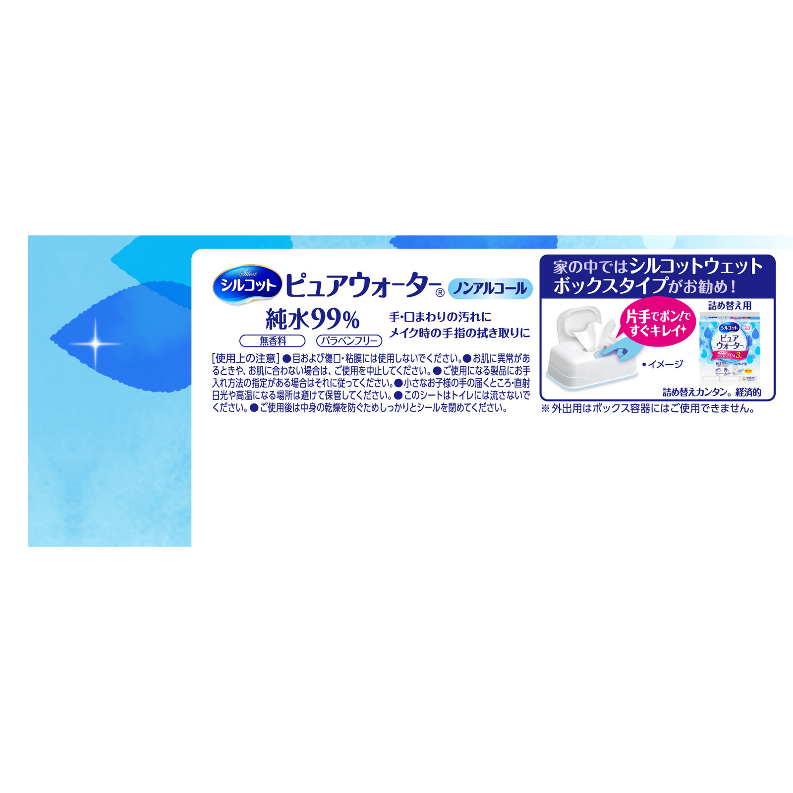ピタっとシール取り出しやすい!乾きにくい!ノンアルコール純水99%で手・口まわりの汚れにも安心手・口まわりの汚れにメイク時の手指の拭き取りに無香料パラベンフリー寸法:140mm×200mm