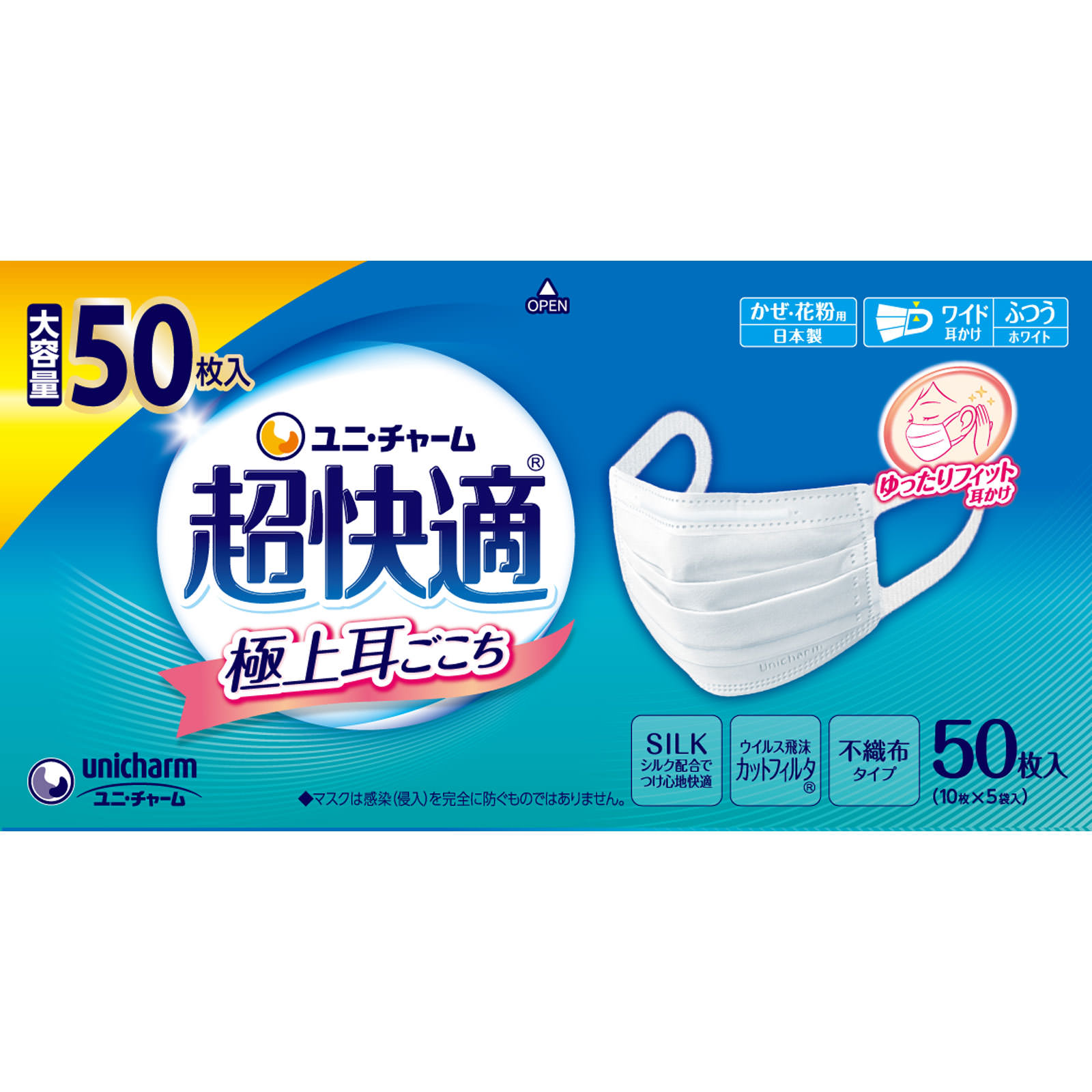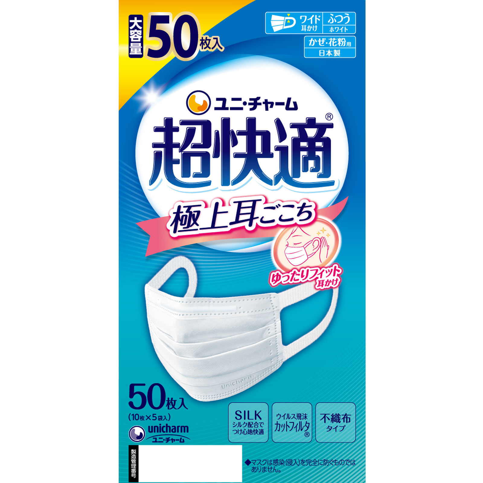 かぜ・花粉用ワイド耳かけ不織布タイプ1「ゆったりフィット耳かけ」で極上な耳ごこち!長時間つけても、耳が痛くなりにくい!2「シルクタッチフィルタ」でつけ心地快適!本物シルク配合だから、つけ心地なめらか。3「全方位フィット構造」でスキマを作りにくい!鼻から頬周りまで、しっかりフィット。4「ウイルス飛沫カットフィルタ」でしっかりブロック!ウイルス飛沫、花粉の侵入を防ぐ。5「通気フィルタ」で息ラクラク!