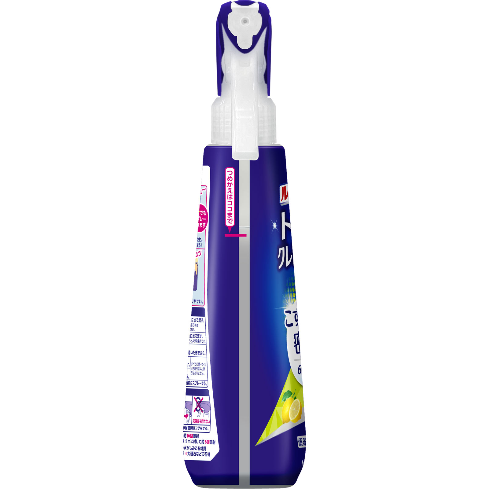 便器内の黄ばみ・尿石や水ぎわの黒ずみの発生予防に・・・スプレーして、60秒後に水で流す。
