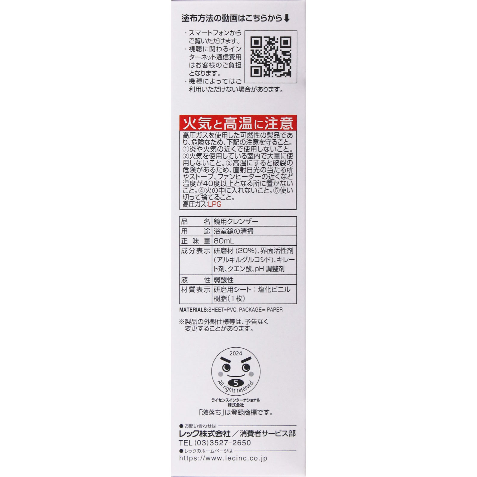 大きい鏡もラクラク!目立つウロコに クエン酸[溶かして]+研磨[落とす]泡パック浴室鏡用研磨力★★☆研磨用シート付き月1回の鏡リセット※約6ケ月分※50×50cmの鏡に対して約3秒で噴射した場合。本体サイズ(mm):幅40×奥行40×高さ145 重量:115g