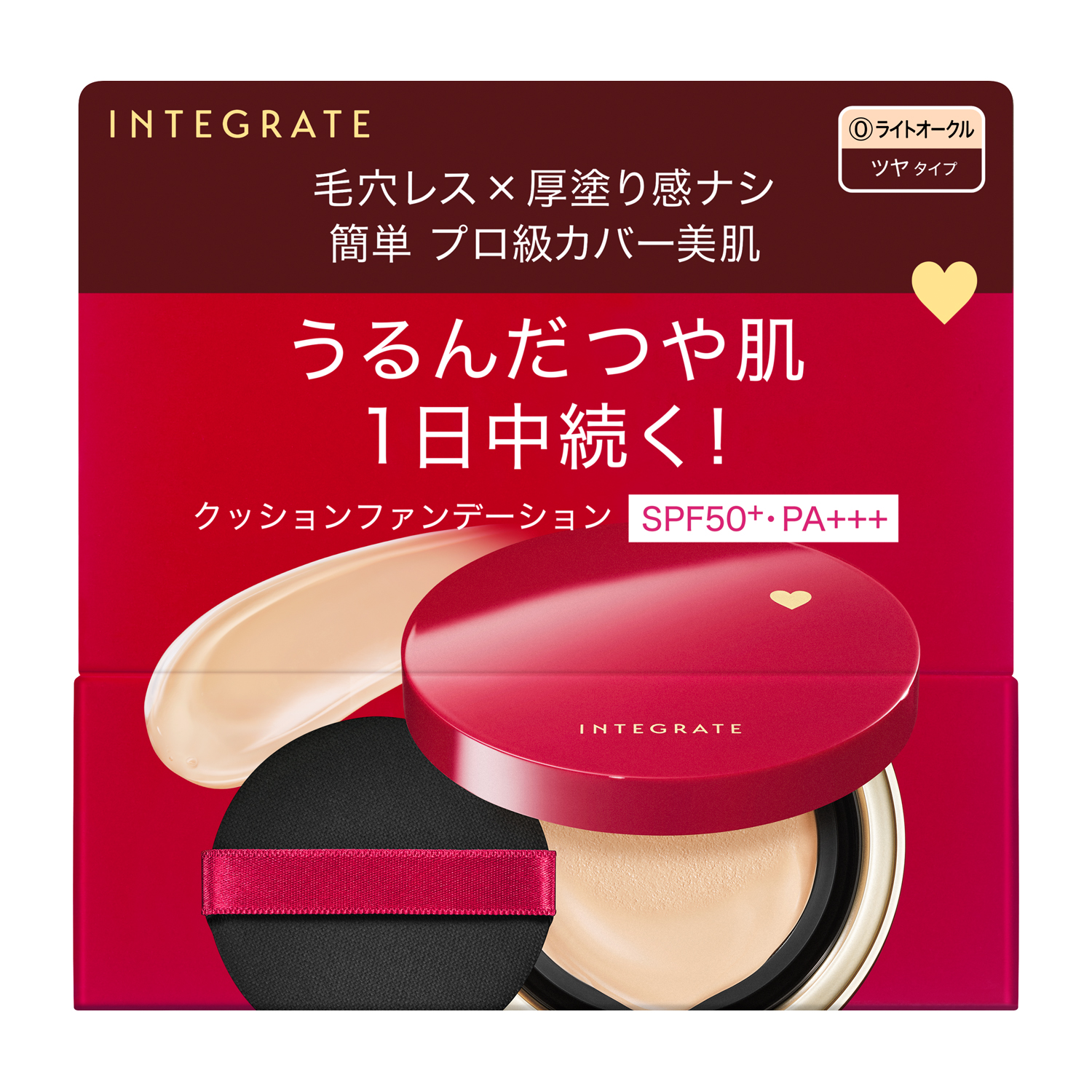 うるんだつや肌が1日中続く クッションファンデーション1回ポンとするだけで、気になる毛穴・色ムラ・ニキビ跡を瞬間カバーするのに、厚塗り感なし。 うるんだつや肌が1日中続く、クッションファンデーション。 SPF50+・PA+++。 13時間化粧持ち*データ取得済み *つや・化粧崩れのなさ・カバー力(メーカー調べ、効果には個人差があります。)SPF 50+ PA+++