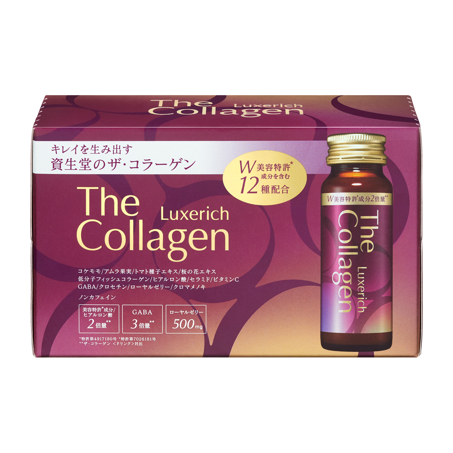 ワンランク上のハリのある毎日へ12種の美容成分をリッチに配合。キレイがめぐり続ける仕組みに着目。W美容特許成分(コケモモ+アムラ果実、トマト種子エキス)に加え、桜の花エキス、GABA、クロセチン、低分子フィッシュコラーゲン、ヒアルロン酸、セラミド、ビタミンC、さらにリュクスリッチ独自成分のローヤルゼリー、クロマメノキを配合。 美容特許成分配合 特許第4917180号:コケモモとアムラ果実など配合成分の組み合わせによる美容についての特許 特許第7026181号:トマト種子エキスによる美容についての特許 ノンカフェイン・脂質ゼロ ミックスフルーツ風味 <こんなかたに> ●ハリのある弾むような若わかしい毎日を過ごしたいかた ●年齢に左右されない日々を楽しみたいかた ●いつまでも美しくいたいかた ●気軽に、積極的にコラーゲンを摂取したいかた ●美容意識の高いかた