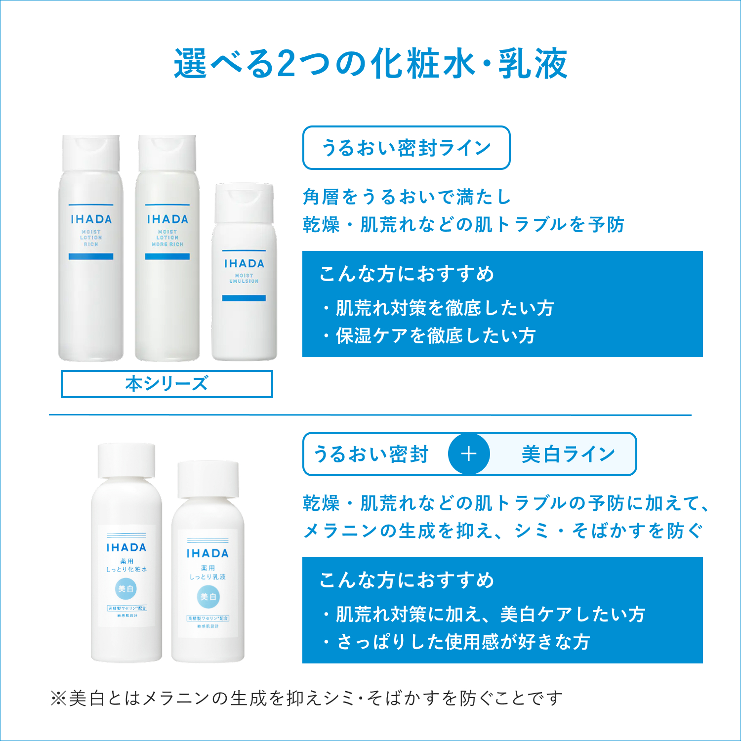 朝晩なじませるだけで肌荒れ・乾燥・ニキビを予防し繰り返しにくい肌へ。 薬用うるおいローション。 うるおいと成分を閉じ込める高精製ワセリン*配合。 Wの肌荒れ防止有効成分配合。 角層うるおいチャージ処方で肌に素早くなじみ、みずみずしいすこやかな角層に。 *肌うるおいバリア保護成分 <肌が敏感な時も毎日使える処方設計> ○弱酸性 ○無香料 ○無着色 ○アルコール(エタノール)無添加 ○パラベン(防腐剤)無添加 ○厳選された原料を使用 〇ノンコメドジェニック・アレルギーテスト済み (全ての方にニキビができない、また、アレルギーが起きないわけではありません。)