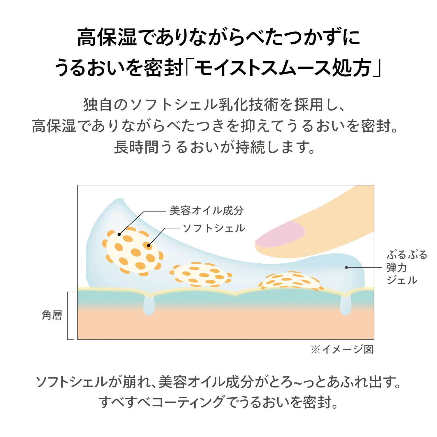 大人毛穴まで本格ケア 高保湿毛穴ケアオールインワン毛穴の目立ちに悩める大人の肌に、高保湿毛穴ケアオールインワン。 毛穴・キメ整え成分グリシルグリシン配合。 1品5機能(化粧水・乳液・美容液・クリーム・マスク)。 乾燥でごわつきがちな肌表面をうるおいでほぐし、角層深くまでじゅわ~っと美容成分を浸透。ふわっと密封し、うるおいを持続させます。