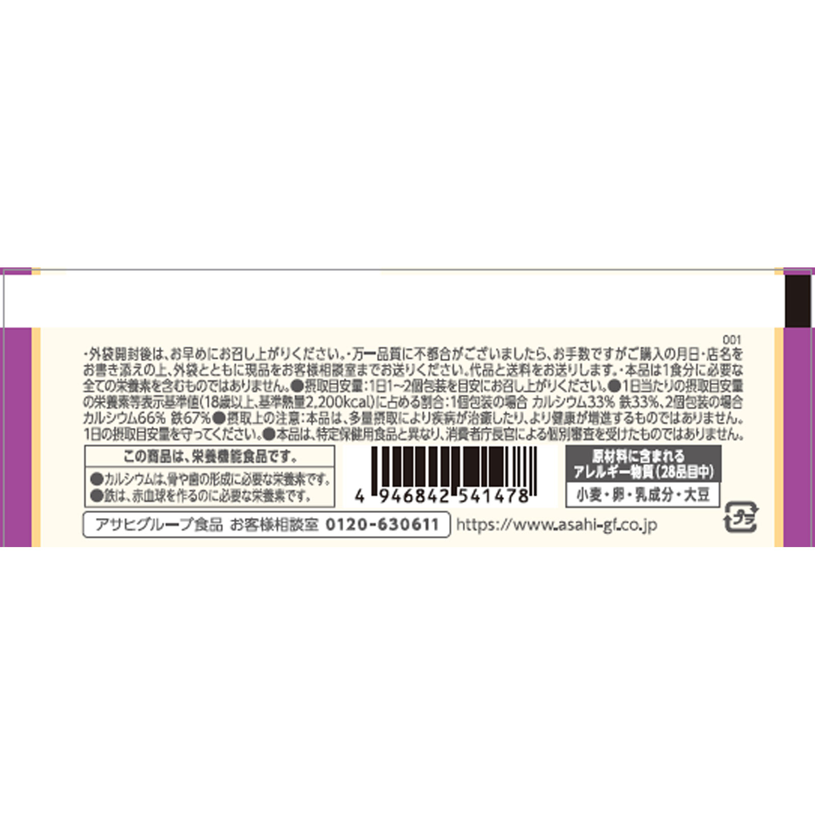 おいしい栄養たんぱく質 ビタミン10種食物繊維 カルシウム・鉄栄養機能食品(カルシウム・鉄)バター0.29%使用カラダに、栄養が必要なように、ココロには、おいしさが必要だから、日々の食生活に、栄養とおいしさを。