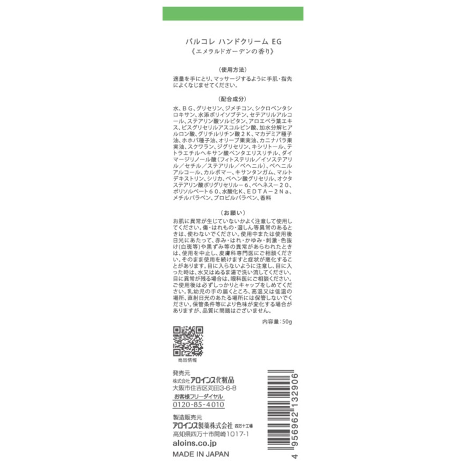 パルコレ ハンドクリーム エメラルドガーデンの香り 50g