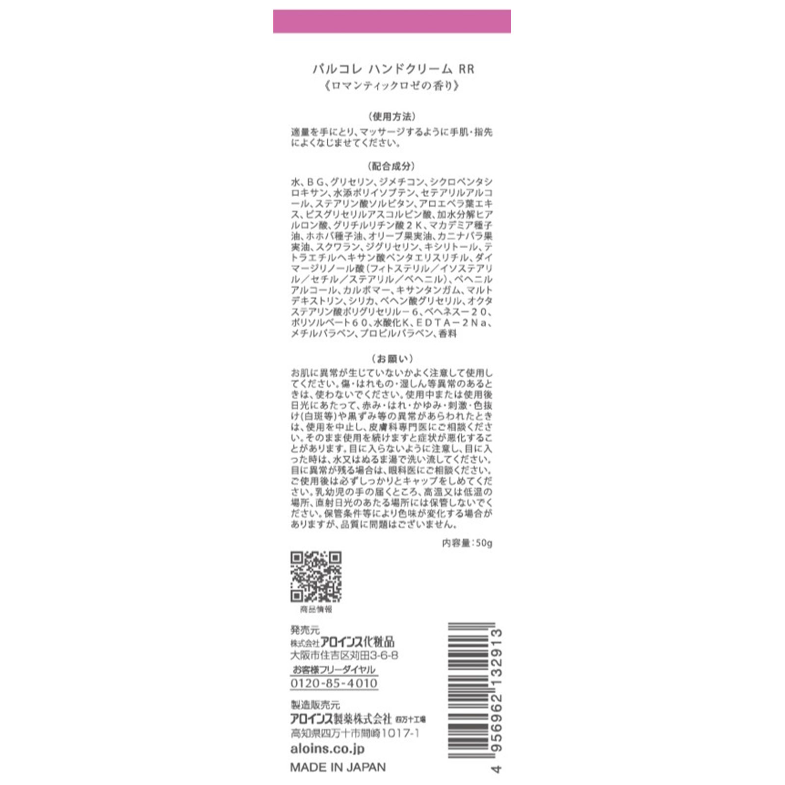 パルコレ ハンドクリーム ロマンティックロゼの香り 50g