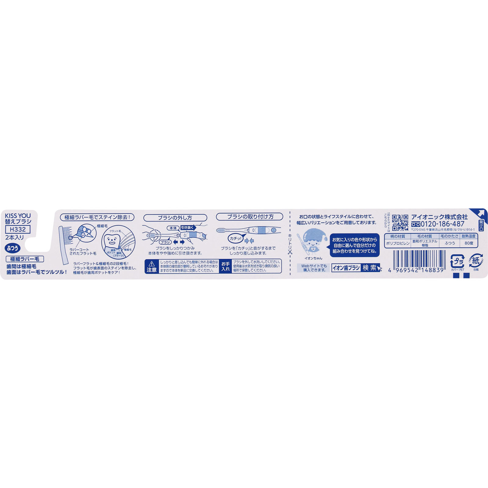 ■歯周病対策■ブラシ交換式○極細ラバー毛歯間は極細毛歯面はラバー毛でツルツル!○極細ラバー毛でステイン除去!極細毛 ラバーコートされたフラット毛ラバーフラット&極細毛の2段植毛!フラット毛が歯表面のステインを除去し、極細毛が歯周ポケットをケア!○ブラシの外し方ブラシ←→本体 引き抜くブラシをしっかりつかみ本体をやや強めに引き抜きます。○ブラシの取り付け方ブラシを「カチッ」と音がするまでしっかり差し込みます。お口の状態とライフスタイルに合わせて、幅広いバリエーションをご用意しております。お気に入りの色や形状から自由に選んで自分だけの組み合わせを見つけてね。耐熱温度:80度