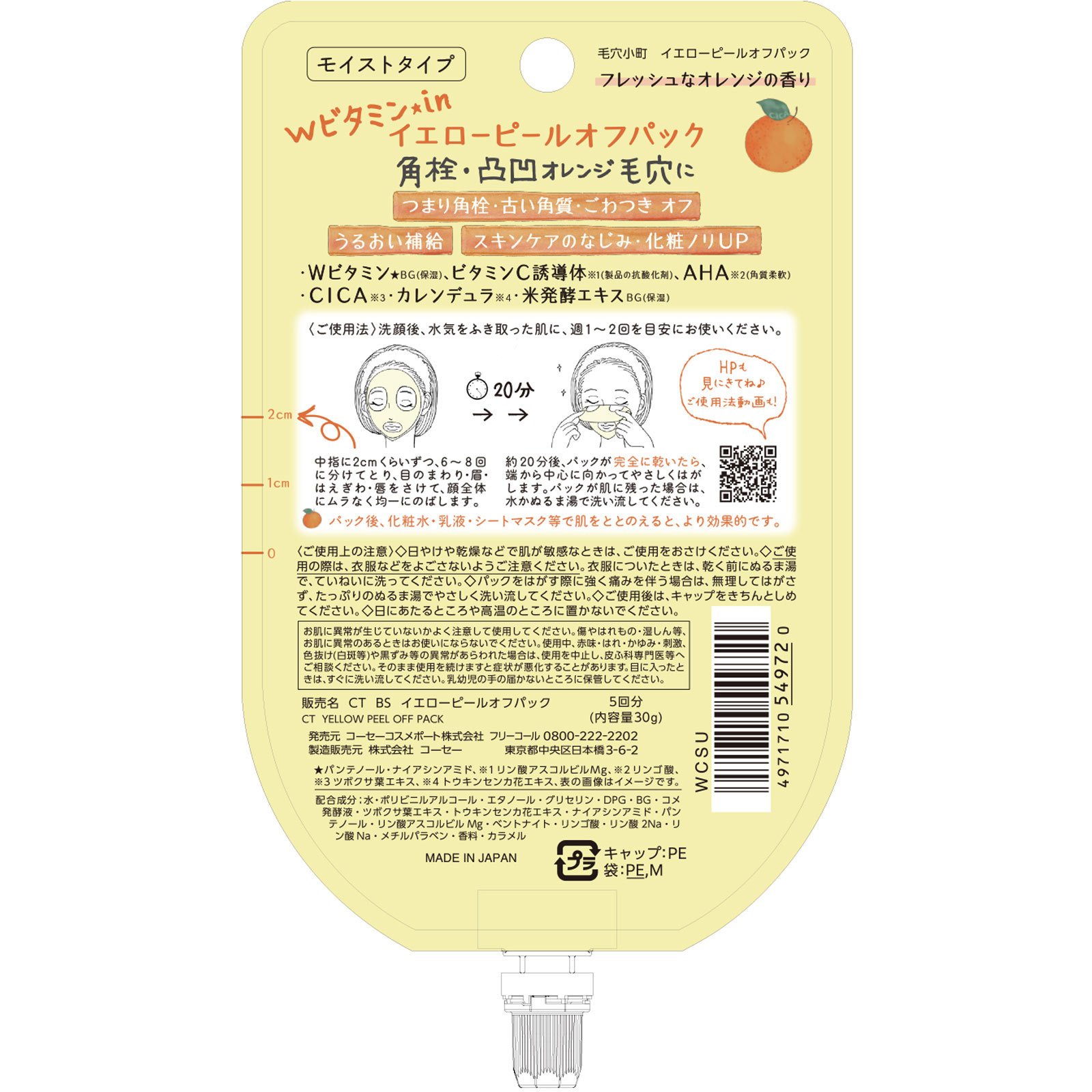 Wビタミン×CICA角栓・凸凹すっきりオフはがすタイプ5回分古い角質つるんもっちり化粧ノリUPモイストタイプフレッシュなオレンジの香り角栓・凸凹オレンジ毛穴につまり角栓・古い角質・ごわつきオフうるおい補給スキンケアのなじみ・化粧ノリUP・Wビタミン★BG(保湿)、ビタミンC誘導体※1(製品の抗酸化剤)、AHA※2(角質柔軟)・CICA※3・カレンデュラ※4・米発酵エキスBG(保湿)★パンテノール・ナイアシンアミド、※1リン酸アスコルビルMg、※2リンゴ酸、※3 ツボクサ葉エキス、※4 トウキンセンカ花エキス