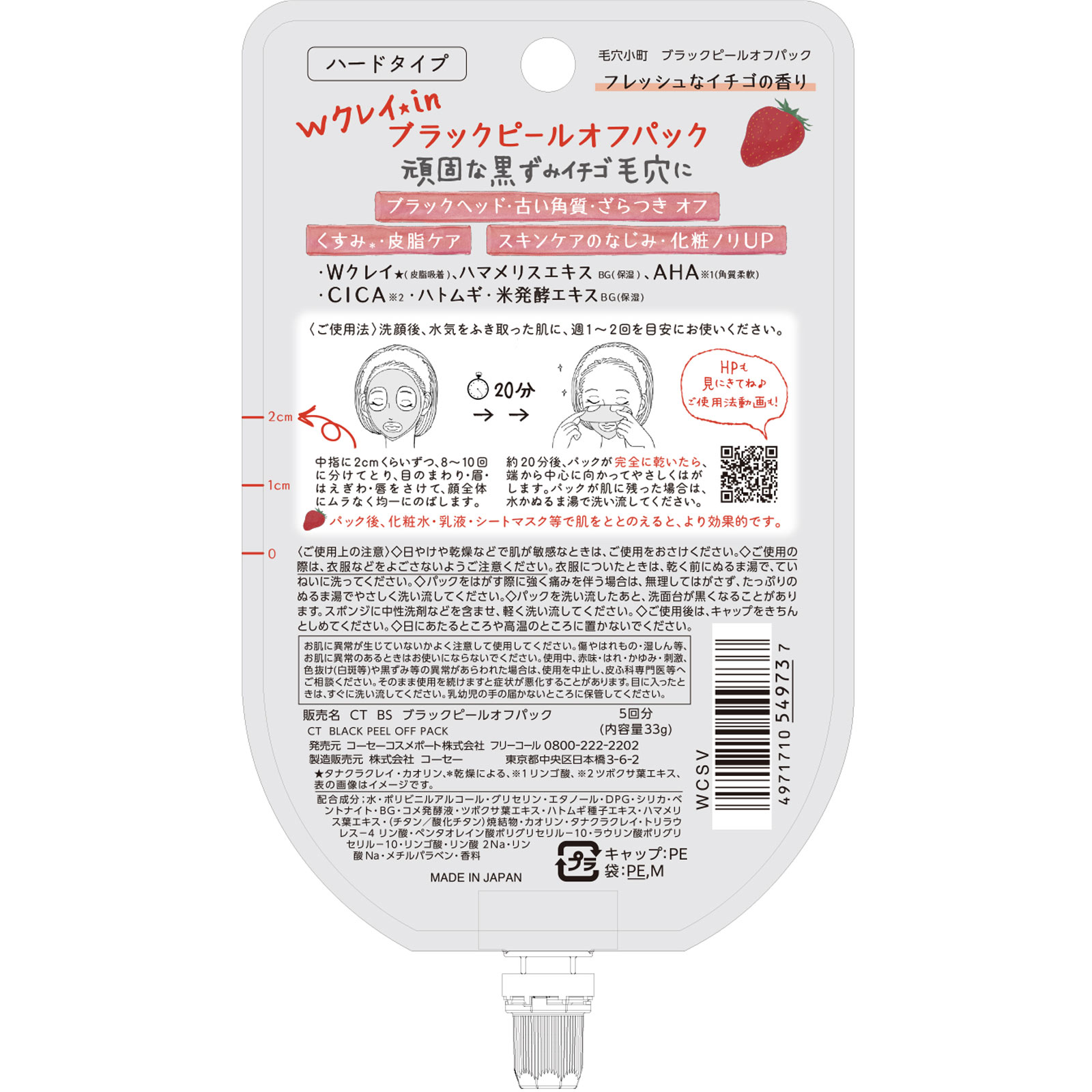 Wクレイ×CICA黒ずみごっそりオフはがすタイプ5回分古い角質つるんくすみ*・皮脂オフハードタイプフレッシュなイチゴの香り頑固な黒ずみイチゴ毛穴にブラックヘッド・古い角質・ざらつきオフくすみ*・皮脂ケアスキンケアのなじみ・化粧ノリUP・Wクレイ★(皮脂吸着)、ハマメリスエキスBG(保湿)、AHA※1(角質柔軟)・CICA※2・ハトムギ・米発酵エキスBG(保湿)★タナクラクレイ・カオリン、*乾燥による、※1 リンゴ酸、※2 ツボクサ葉エキス