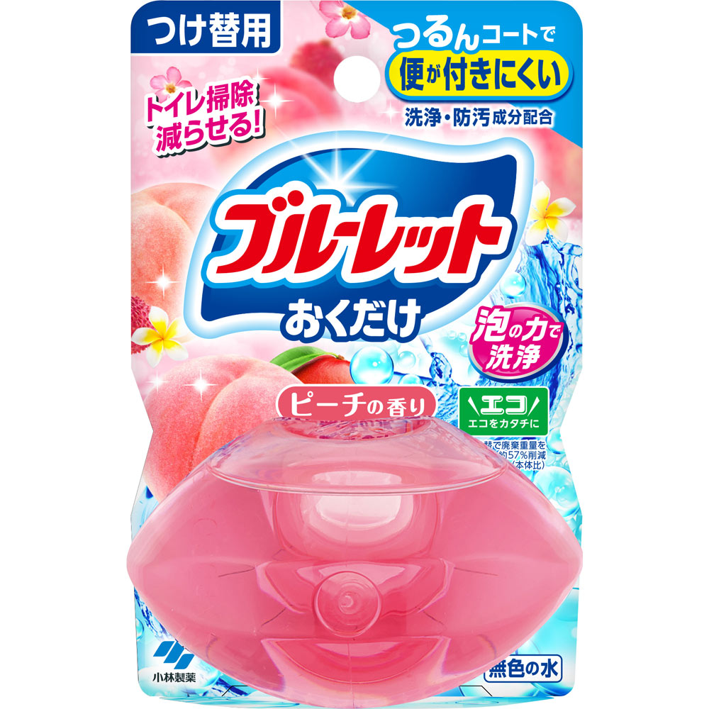 トイレ掃除減らせる!つるんコートで便が付きにくい泡の力で洗浄どの液体ブルーレットの下容器にも使えます。●洗浄・防汚成分を配合。流すたびに便器表面をコートし、汚れの付着を抑えます。●標準的に約3~5週間使用できます。※使用環境・汚れの程度により、効果や持ち期間が異なることがある。※水の流れない部分の汚れは防げない。便器やタンクに影響を与えません本品はタンク内の器具、便器、浄化槽及び浄化槽内のバクテリアへの影響に配慮し設計しています