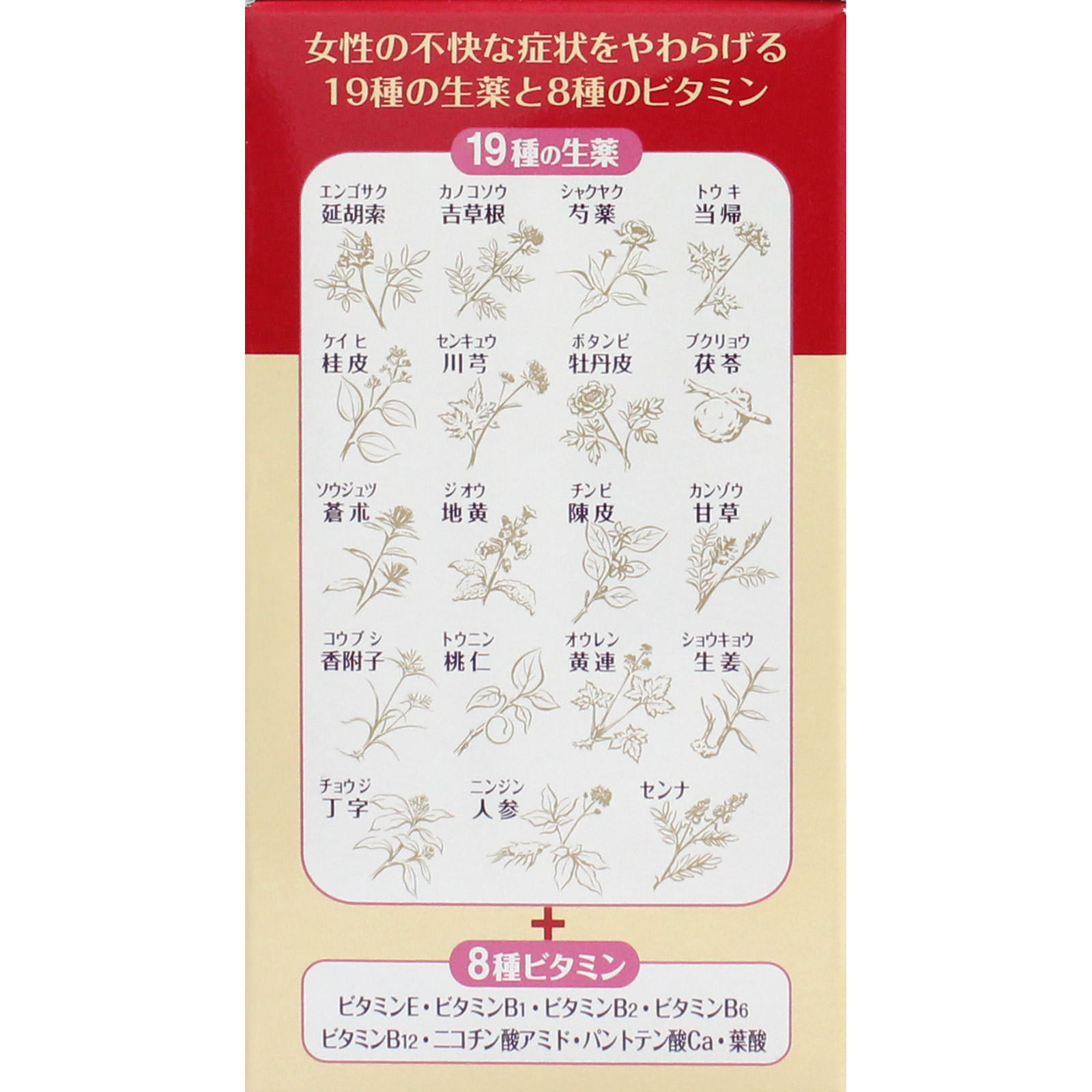女性のお悩みに効果的な生薬主薬製剤。ビタミンも配合。