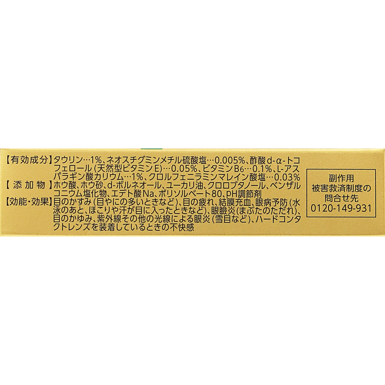 ※添加物として、ホウ酸、ホウ砂、d-ボルネオール、ユーカリ油、クロロブタノール、ベンザルコニウム塩化物、エデト酸Na、ポリソルベート80、pH調節剤を含有します。