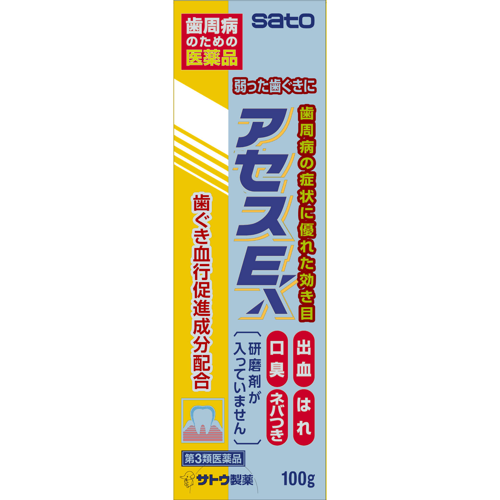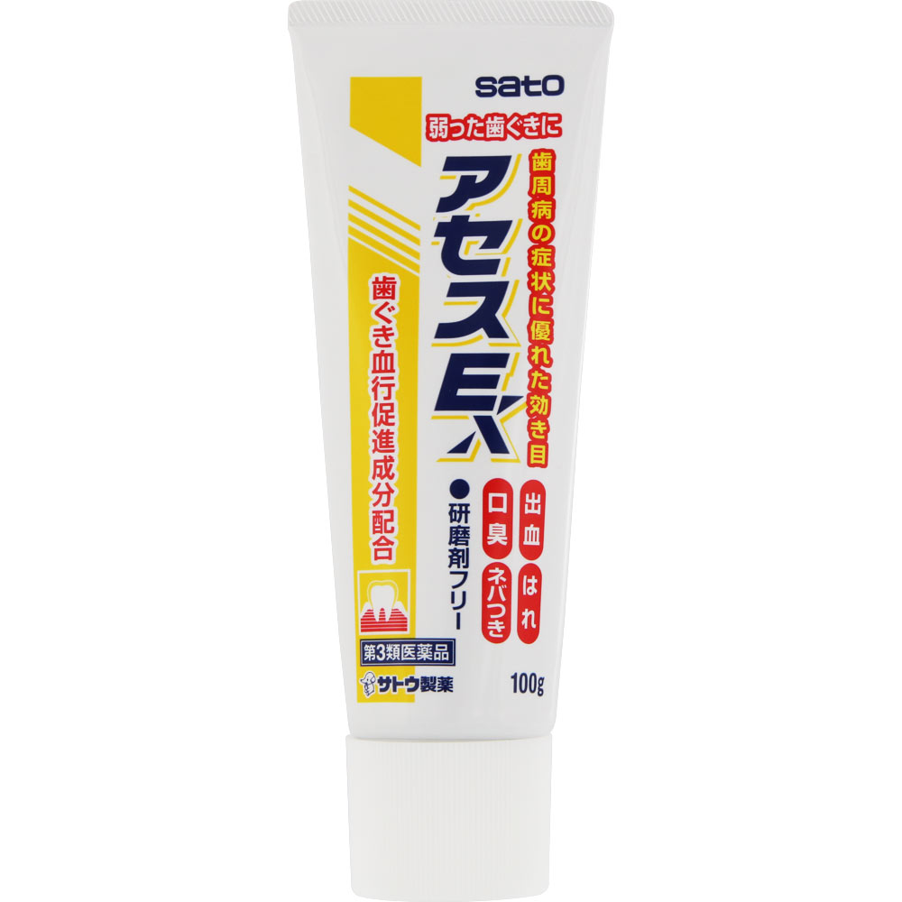 歯周病対策に、各種生薬とビタミンEのチカラが効果的。アセスEは・・・●歯ぐきからの出血、はれ、口臭などに効果をあらわす歯肉炎、歯槽膿漏薬です。●トコフェロール酢酸エステル(ビタミンE酢酸エステル)が歯肉の血行を促進し、新陳代謝を高めます。●泡が立たず味も甘くないので、使い始めは違和感があるかもしれませんが、使いなれると口の中がさっぱりして、さわやかな使用感が得られます。●研磨剤を含んでいないので不溶性のカスが残ることがなく、歯ぐきにやさしいハミガキです。口臭の多くは、口の中の細菌(ジンジバリス菌)が歯垢を分解してガスを発生することで起こります。ジンジバリス菌はさらに、毒素を出して歯ぐきのはれや炎症を引き起こします。アセスEは、天然の植物性生薬の働きでジンジバリス菌にすぐれた抗菌力をあらわします。さらに、すぐれた抗炎症作用、はれを鎮める作用により、歯槽膿漏の諸症状に効果をあらわします。