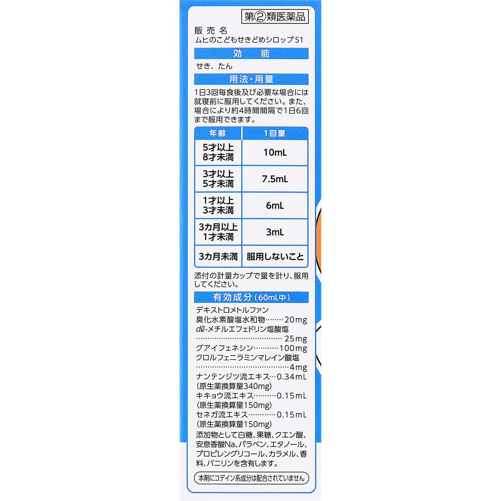 ムヒのこどもせきどめシロップS1は、せき、たんに効果のある成分を配合したお子さま用のせきどめ薬です。